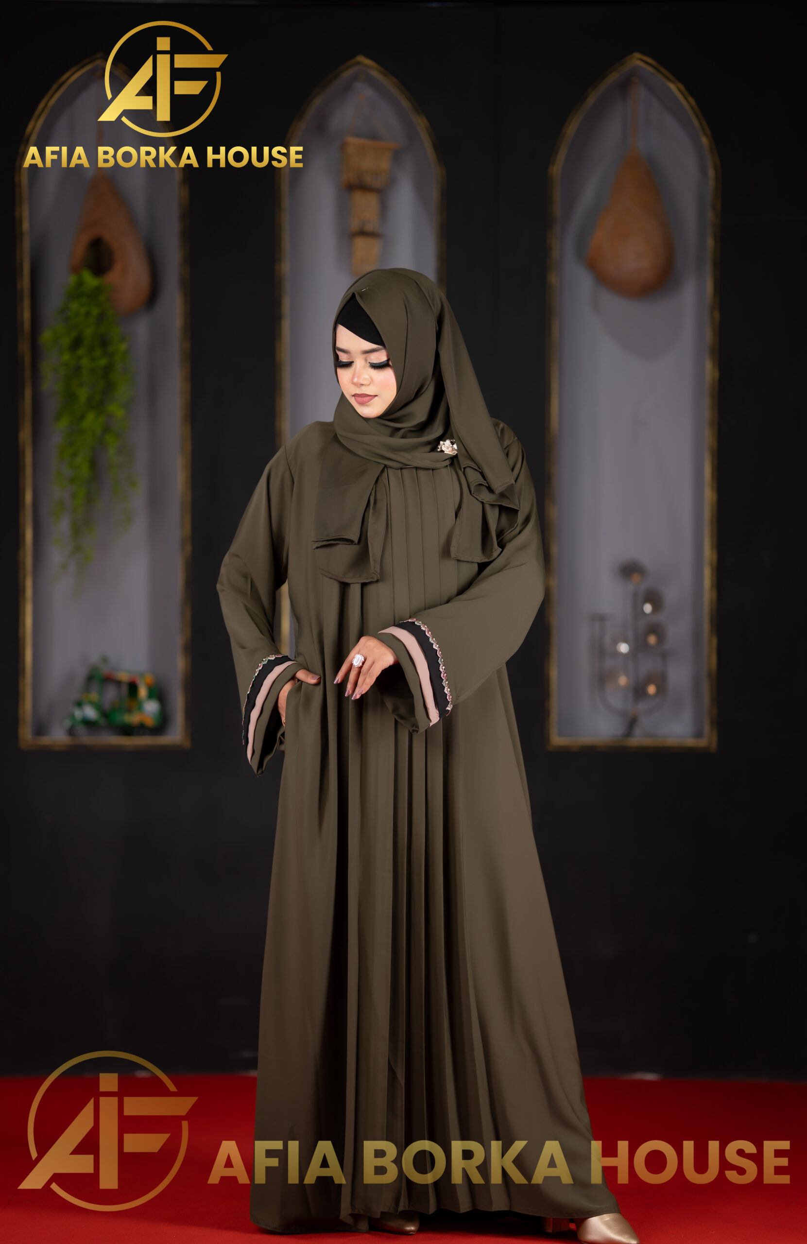 Arabian Style Jafran đđŽđ¯đŋđļđ°đ Embroidery Burqa Olive Colour