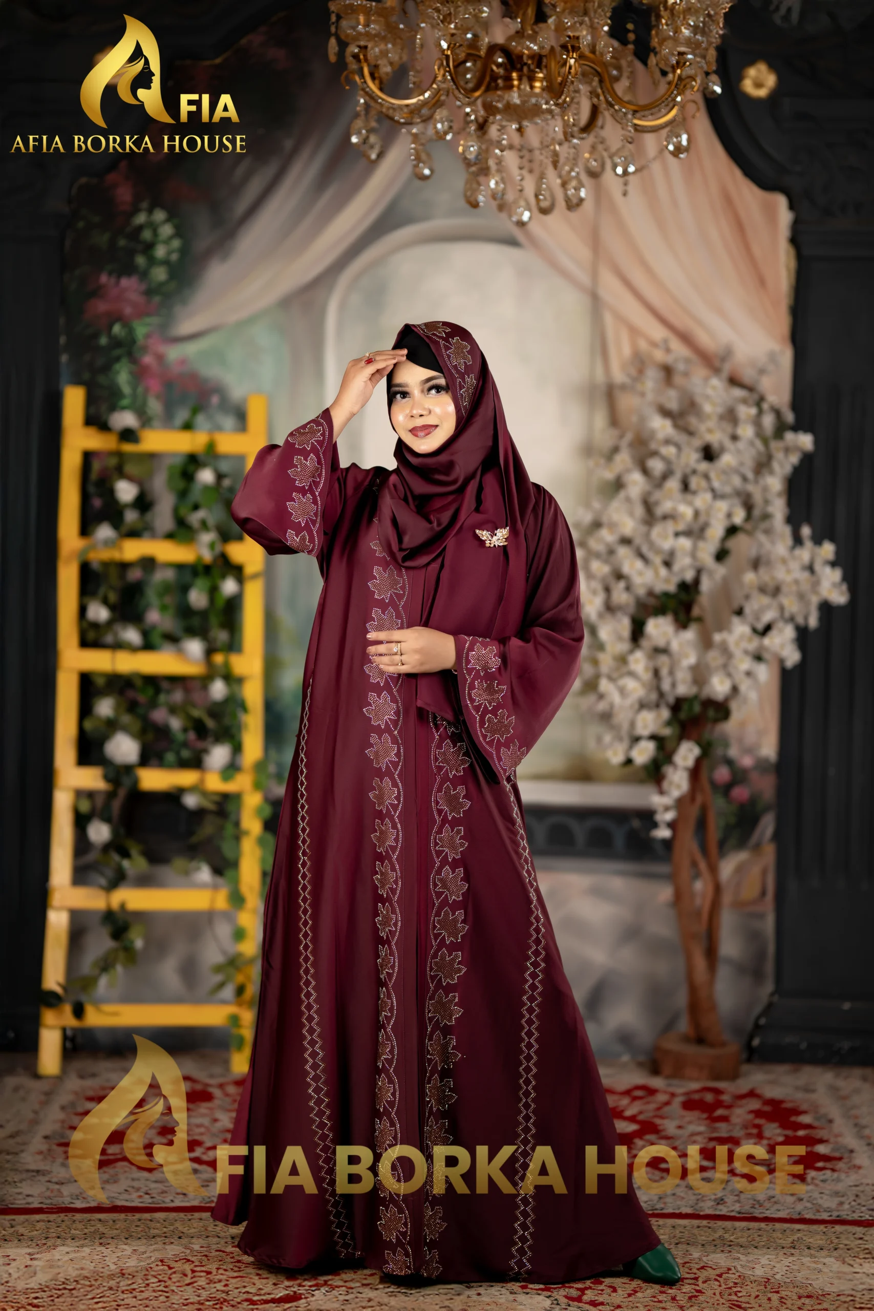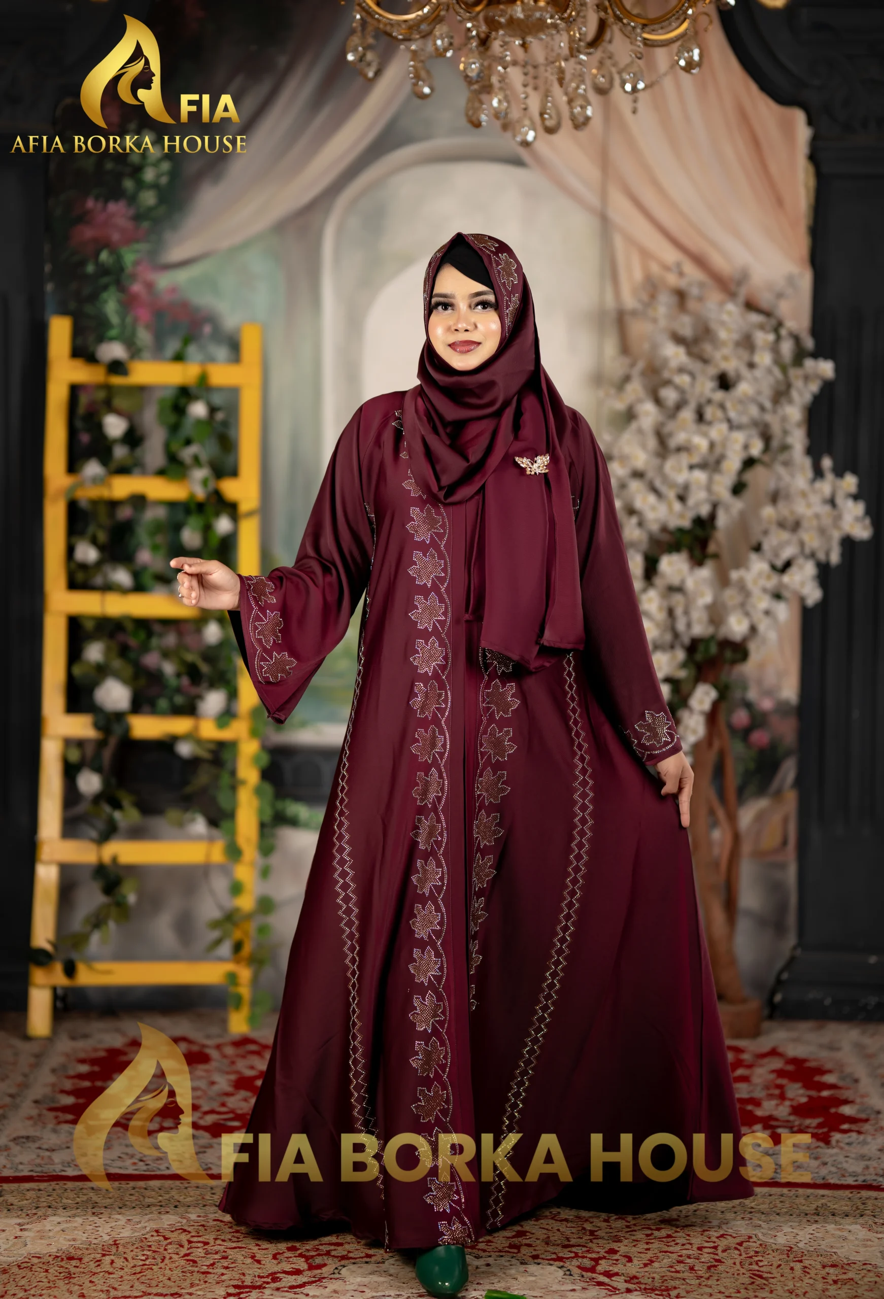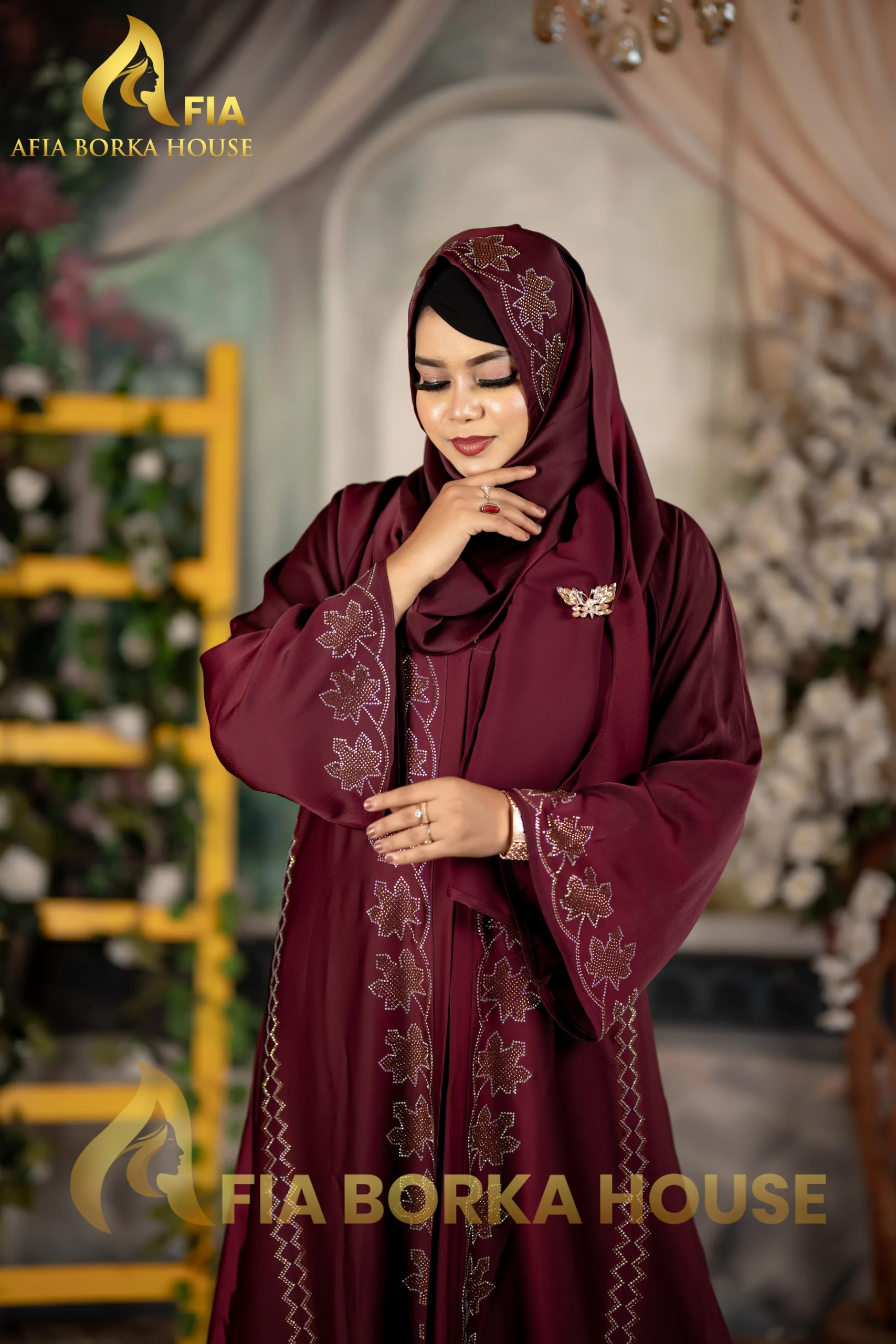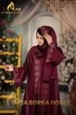 Arabian Style Jafran 𝗙𝗮𝗯𝗿𝗶𝗰𝘀 Embroidery Burqa Merun Colour