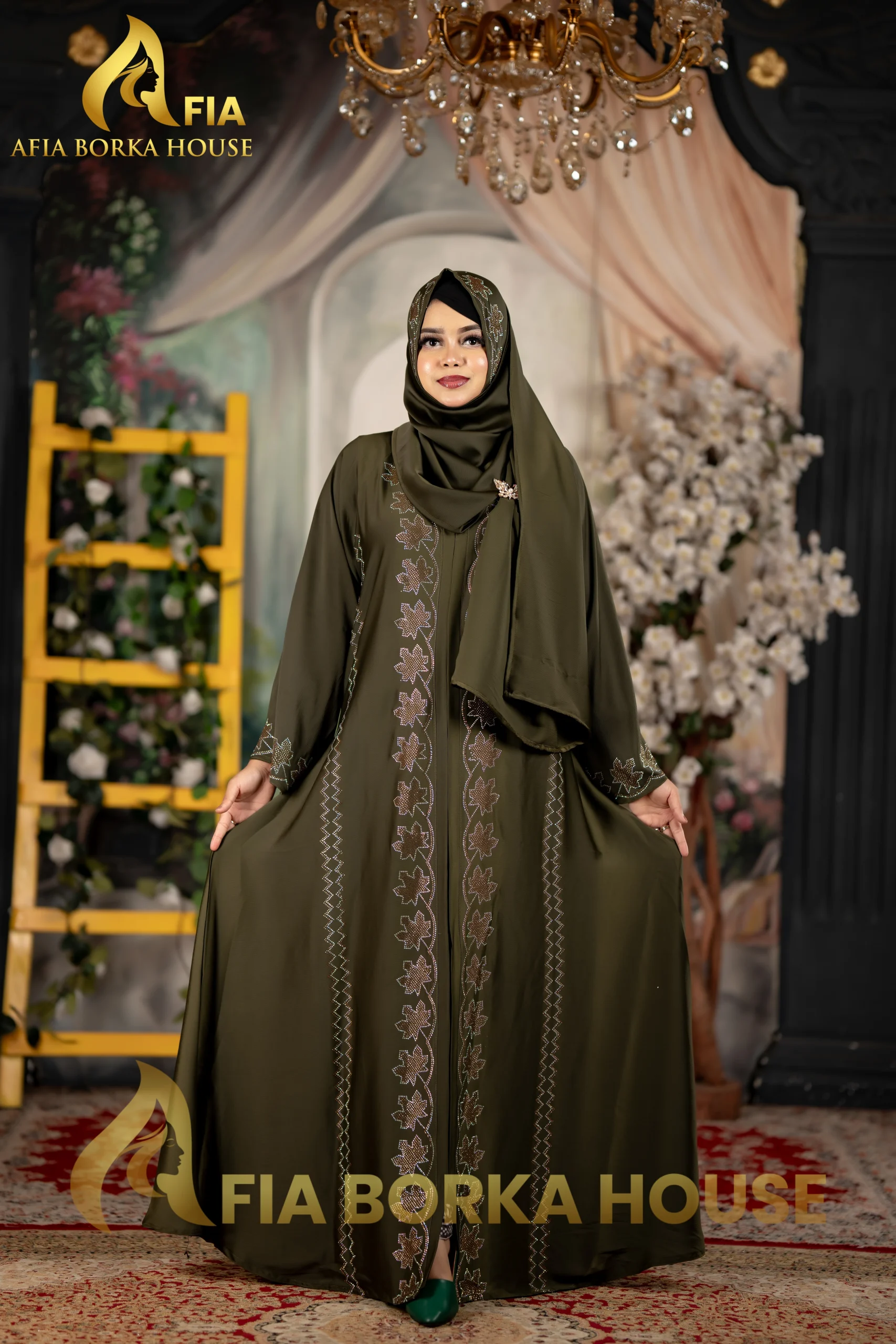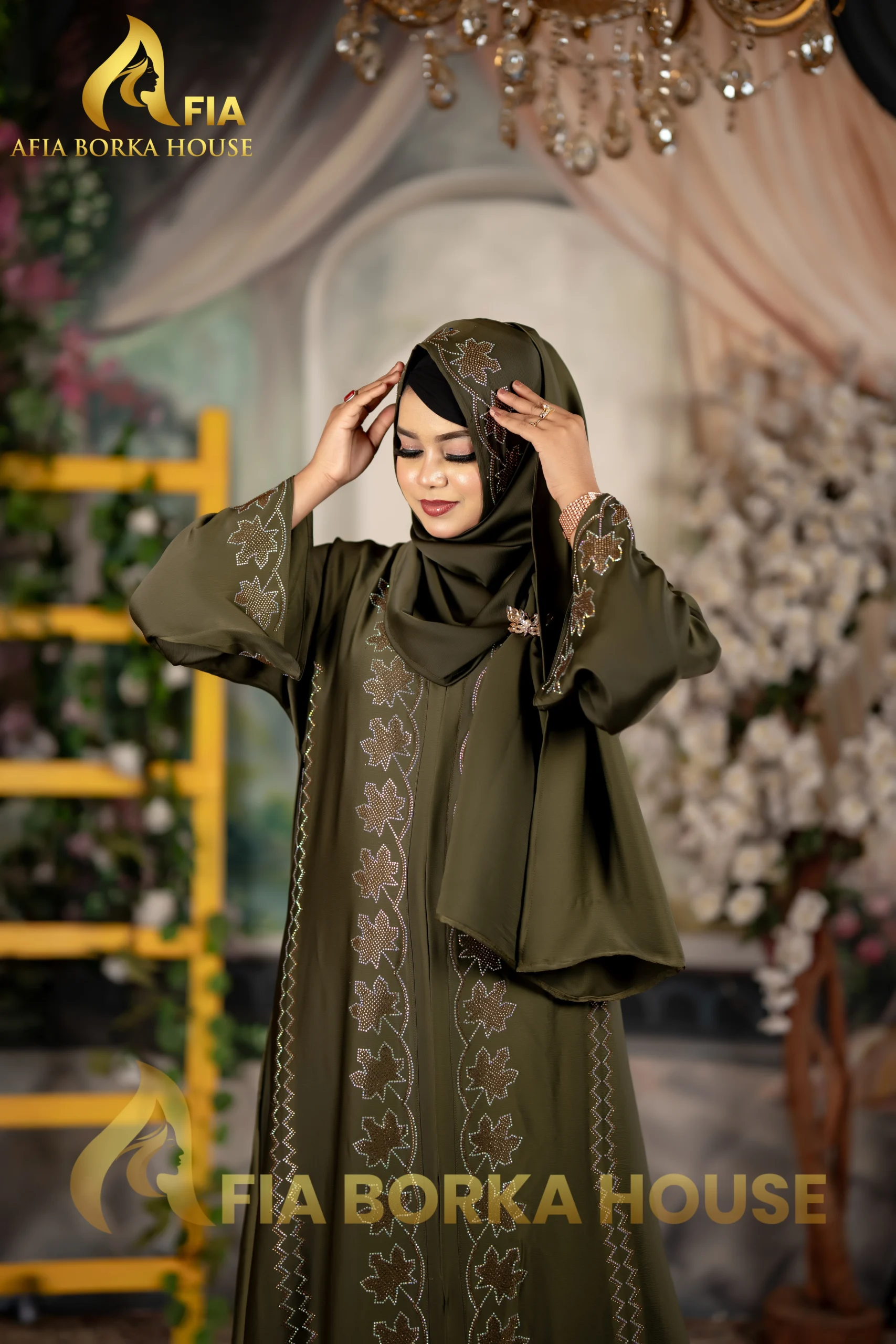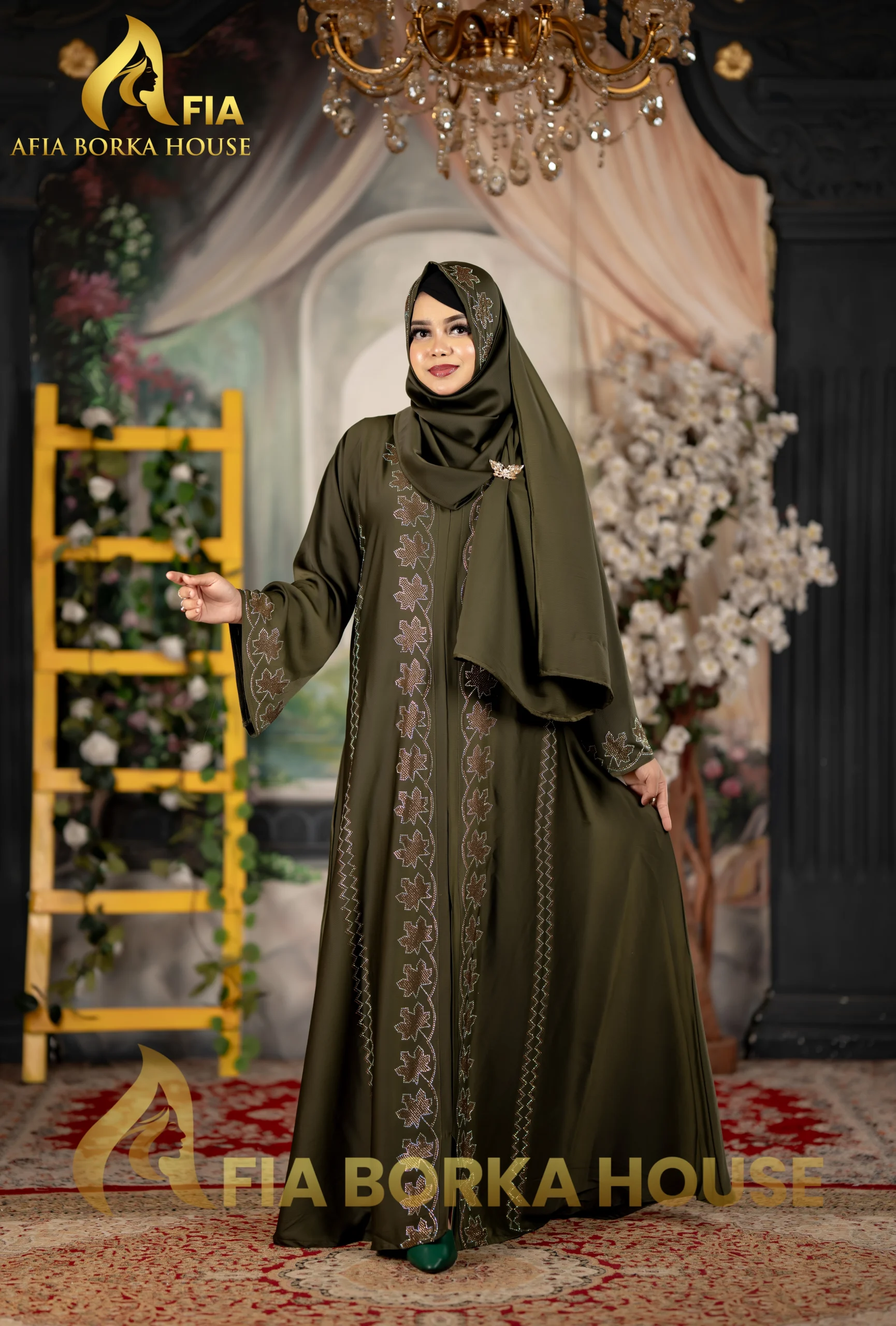 𝗣𝗿𝗲𝗺𝗶𝘂𝗺 𝗦𝗮𝗳𝗳𝗿𝗼𝗻 Jafran 𝗙𝗮𝗯𝗿𝗶𝗰𝘀 DMC STONE BORKA Olive Colour