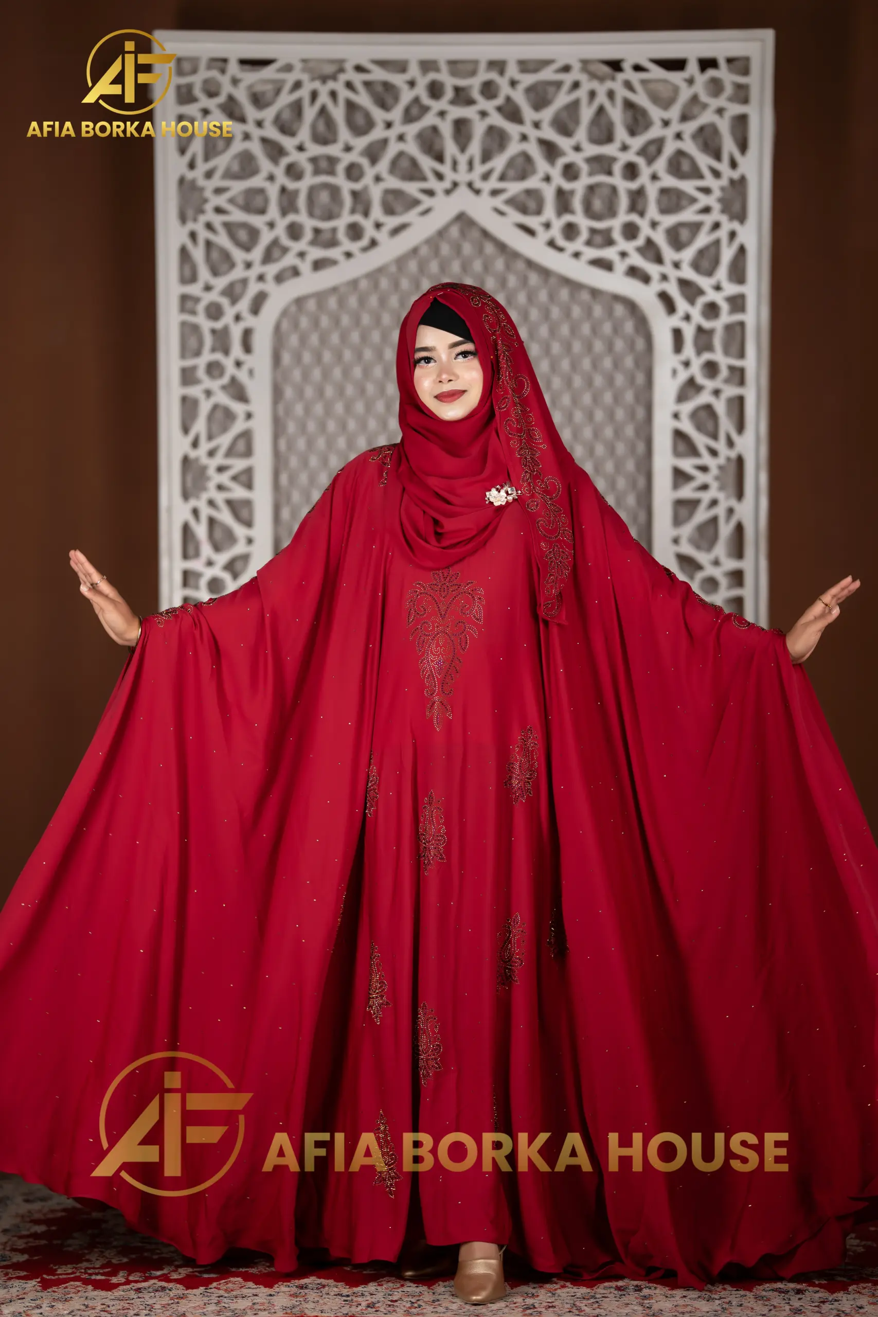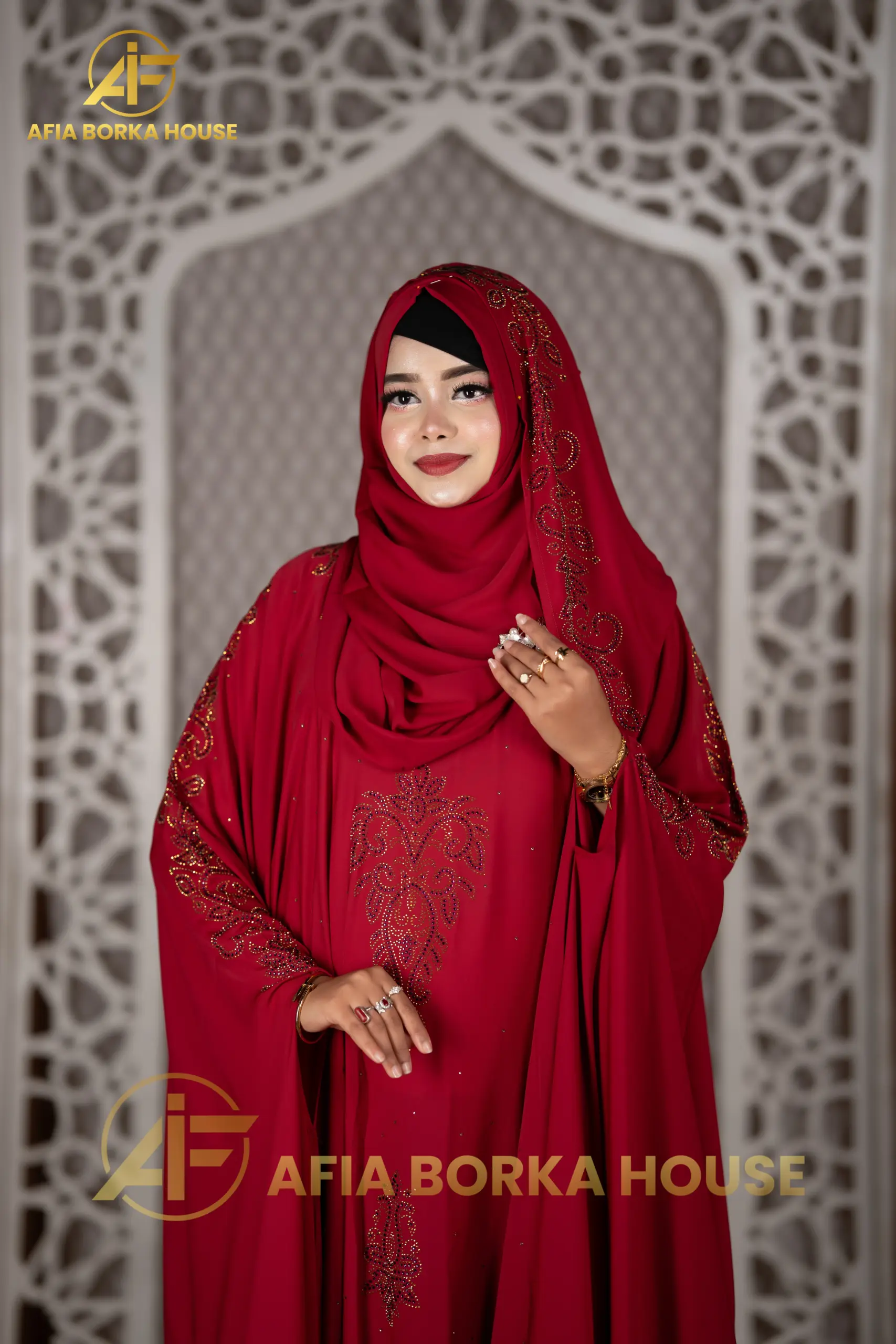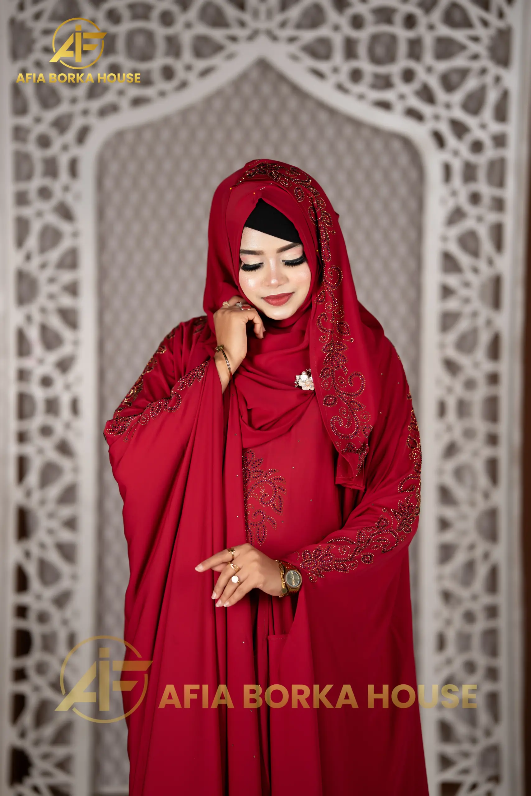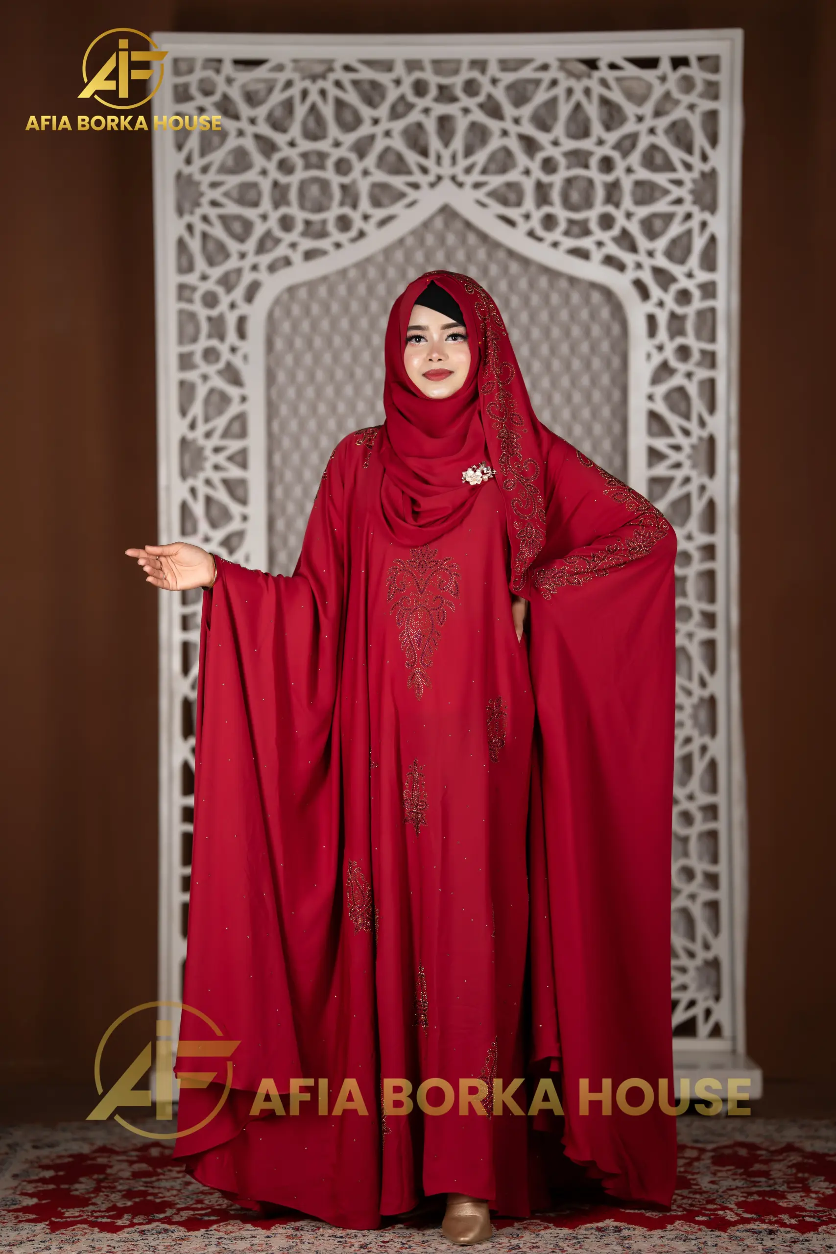 Luxury Jafran 𝗙𝗮𝗯𝗿𝗶𝗰𝘀 Embroidery Abaya Merun Colour