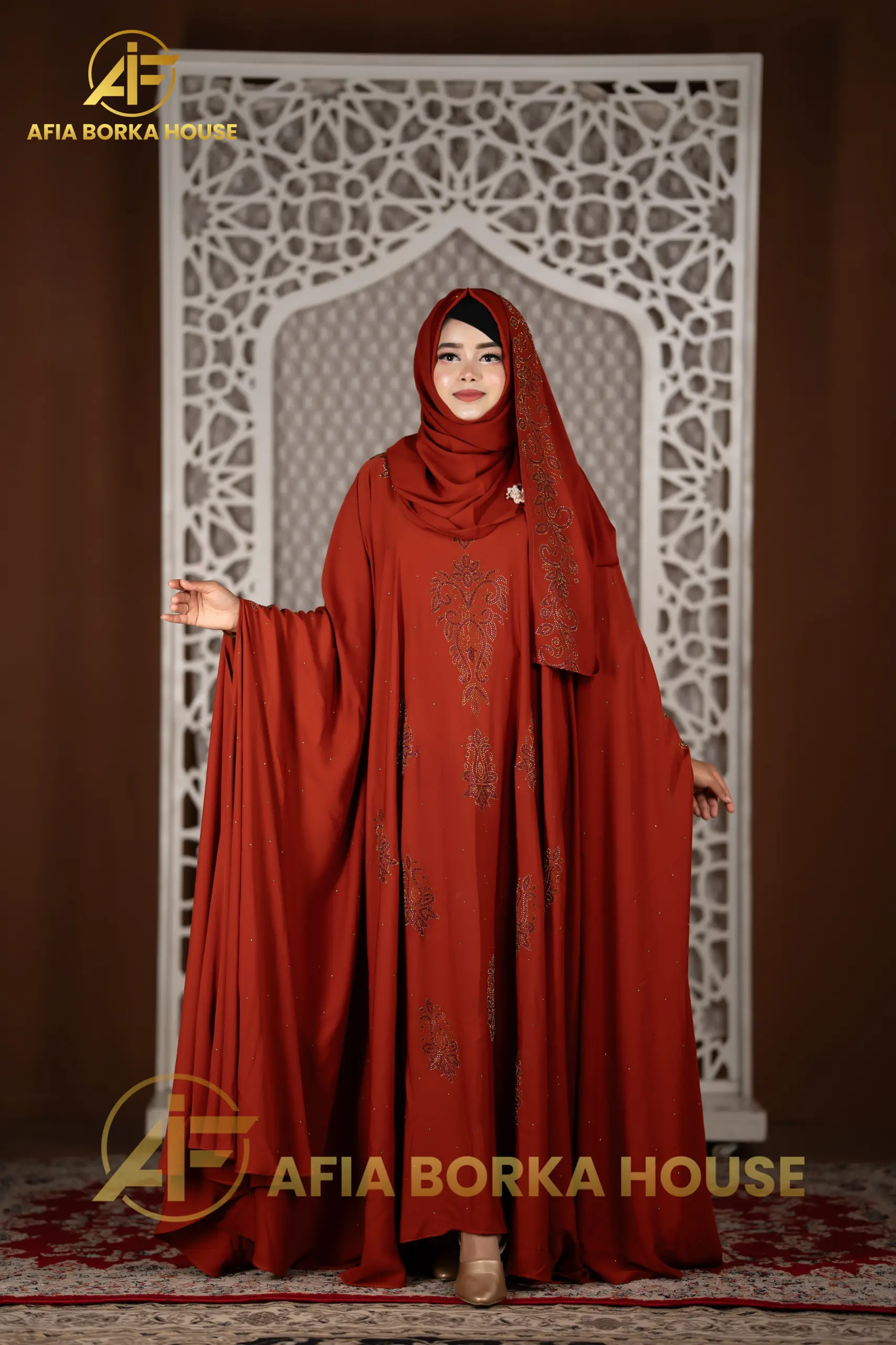 Luxury Jafran 𝗙𝗮𝗯𝗿𝗶𝗰𝘀 Embroidery Abaya Merun Colour
