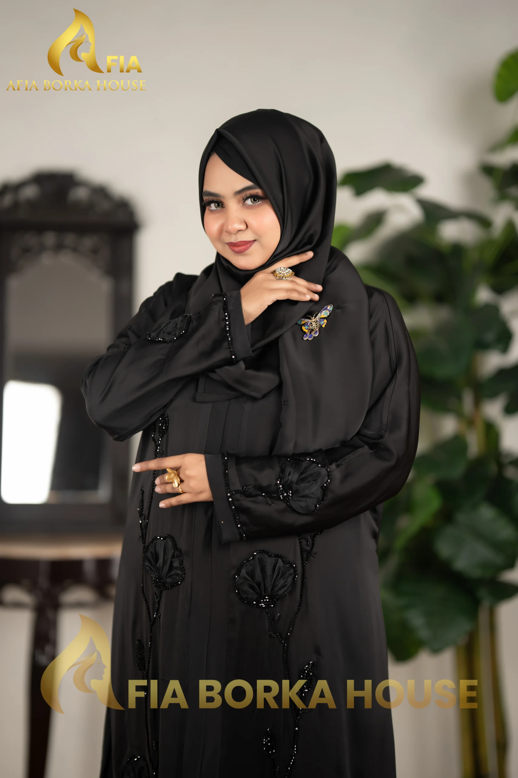 Arabian Style Jafran 𝗙𝗮𝗯𝗿𝗶𝗰𝘀 Embroidery Burqa Black Colour