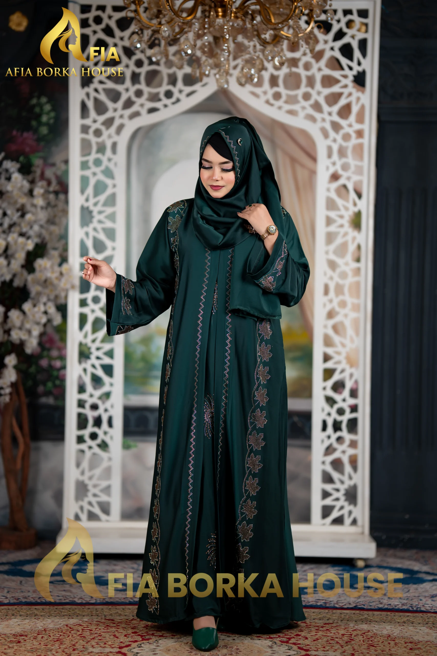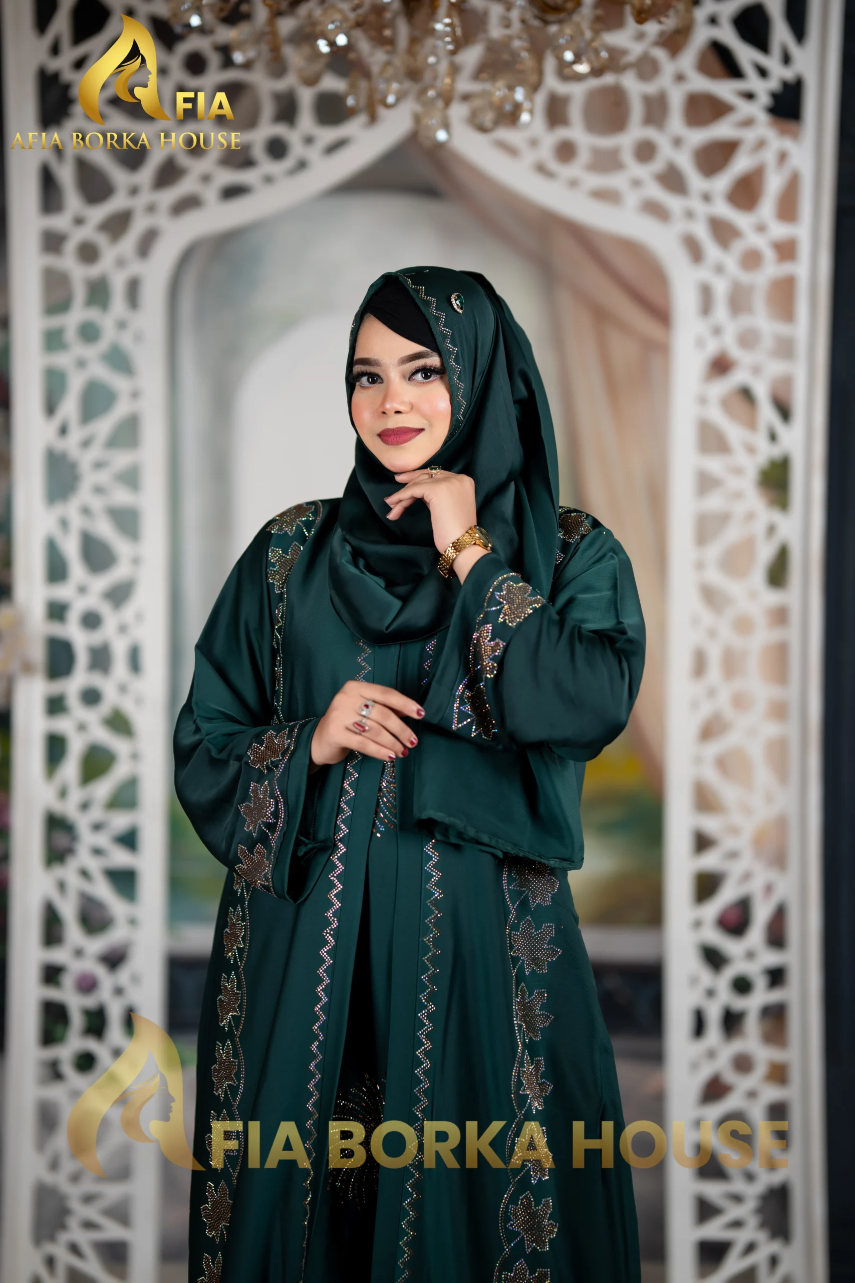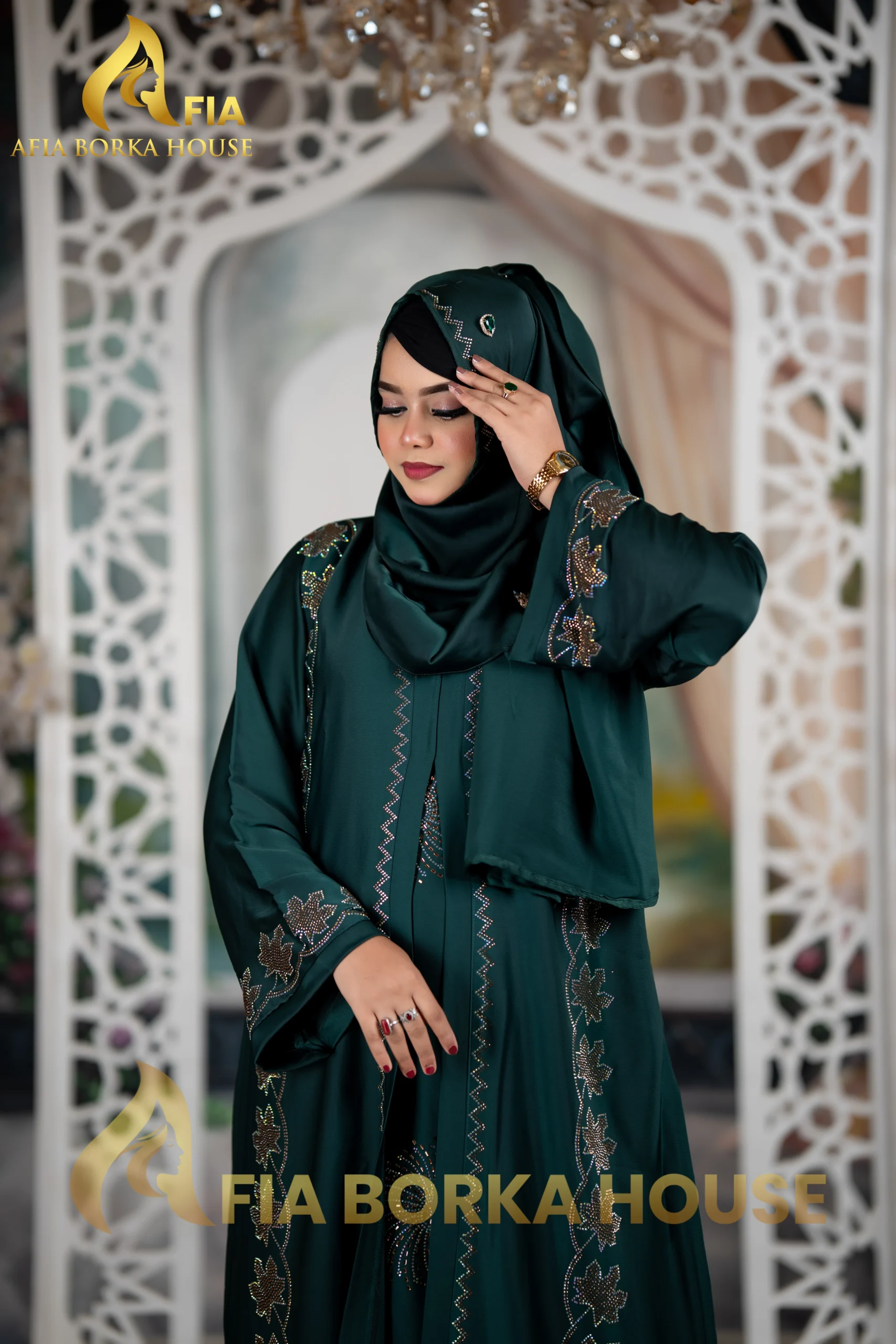Afra 4-Part Attest Koti Party Borka See Green Colour