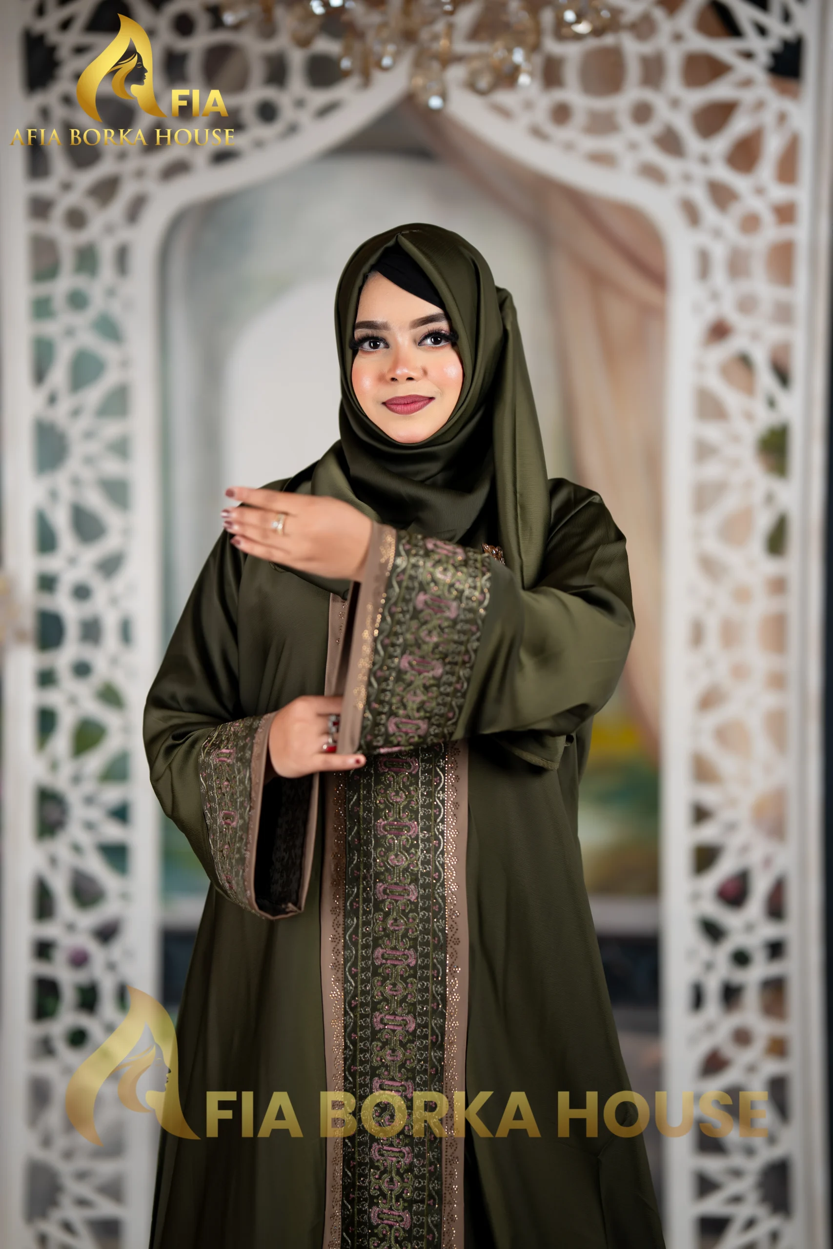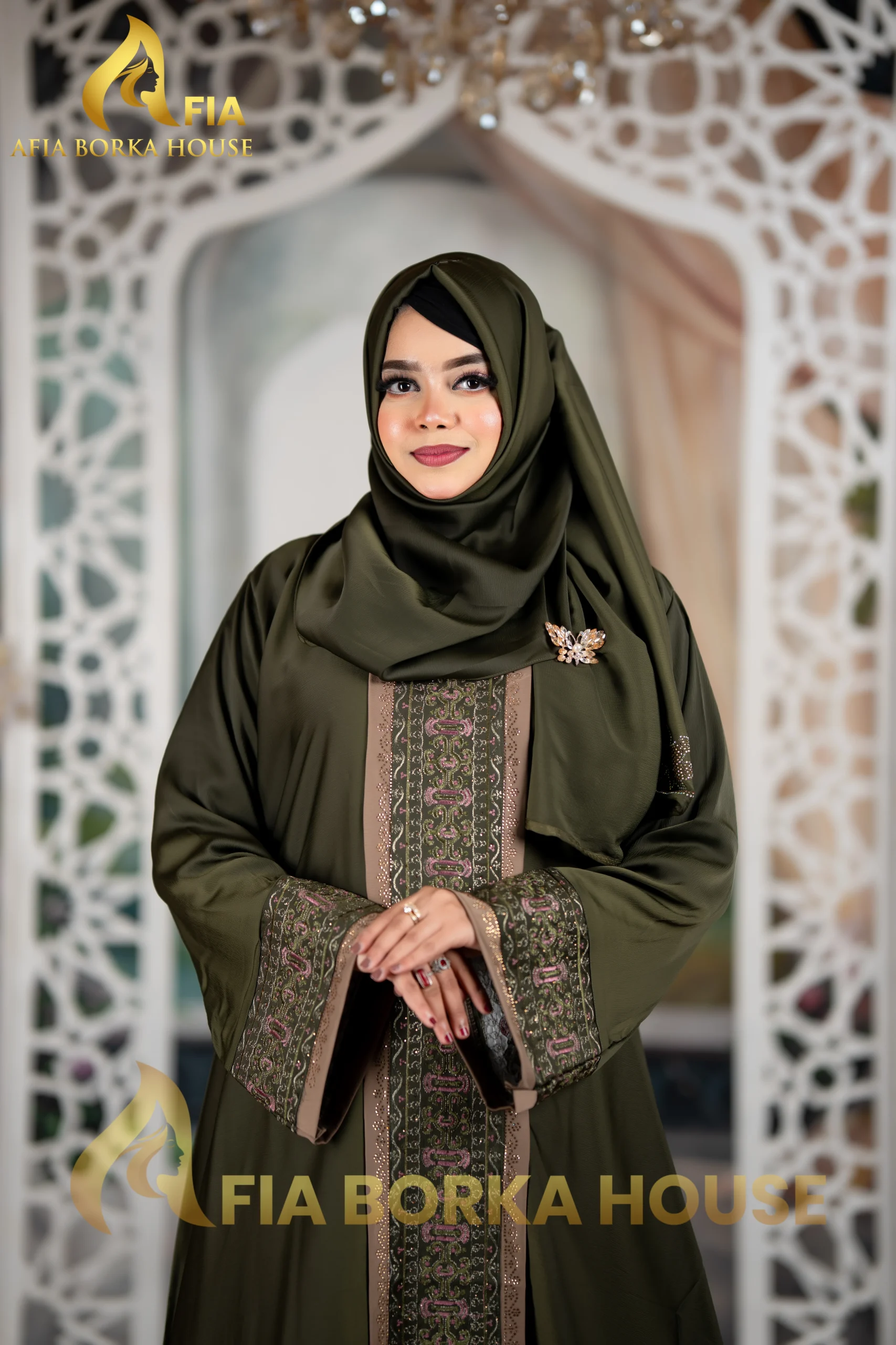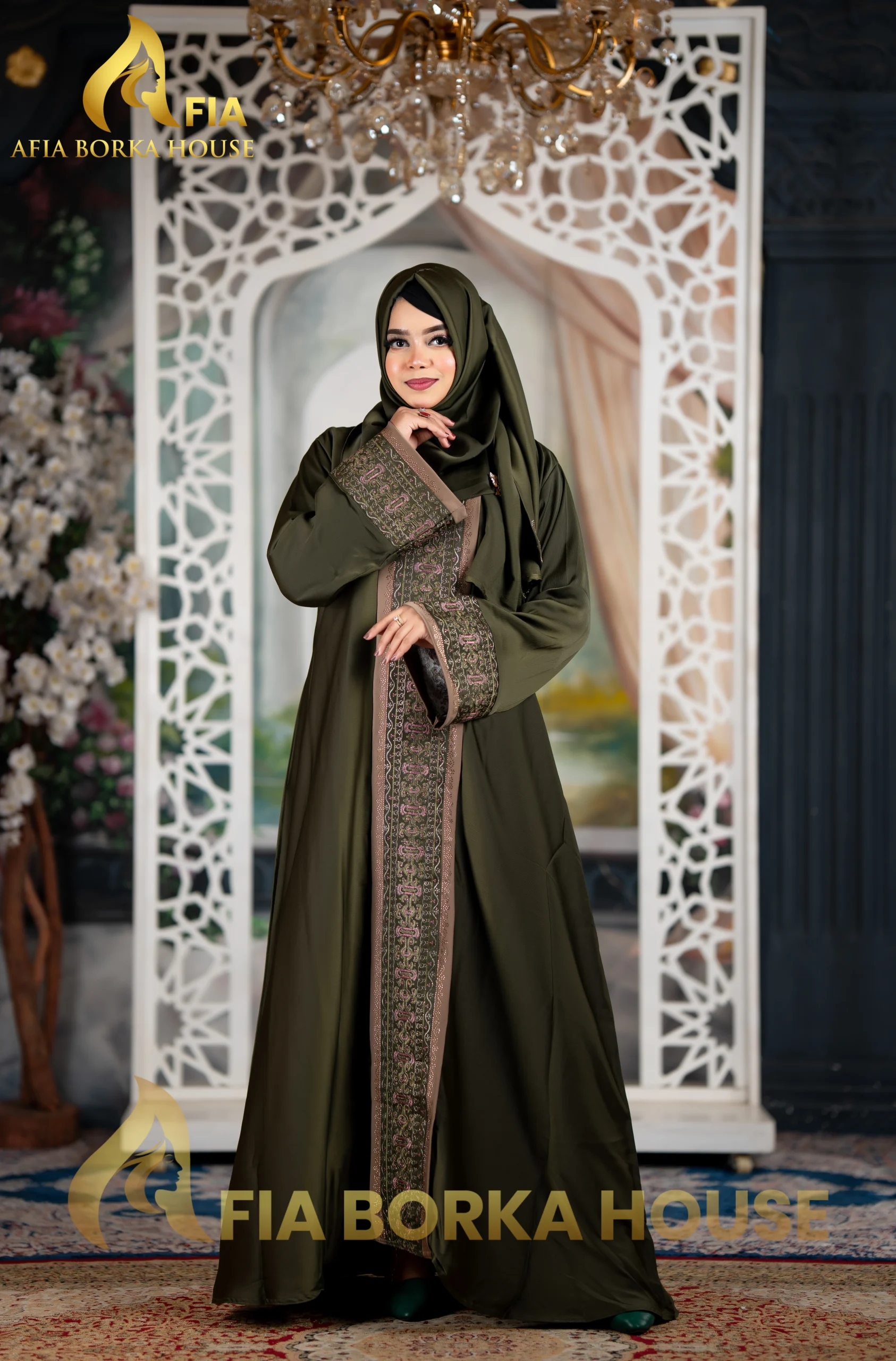 Arabian Style Jafran đđŽđ¯đŋđļđ°đ Embroidery Burqa Olive Colour