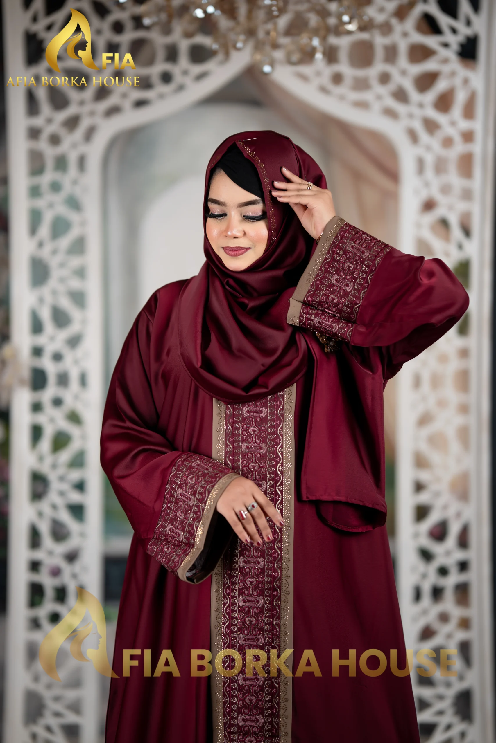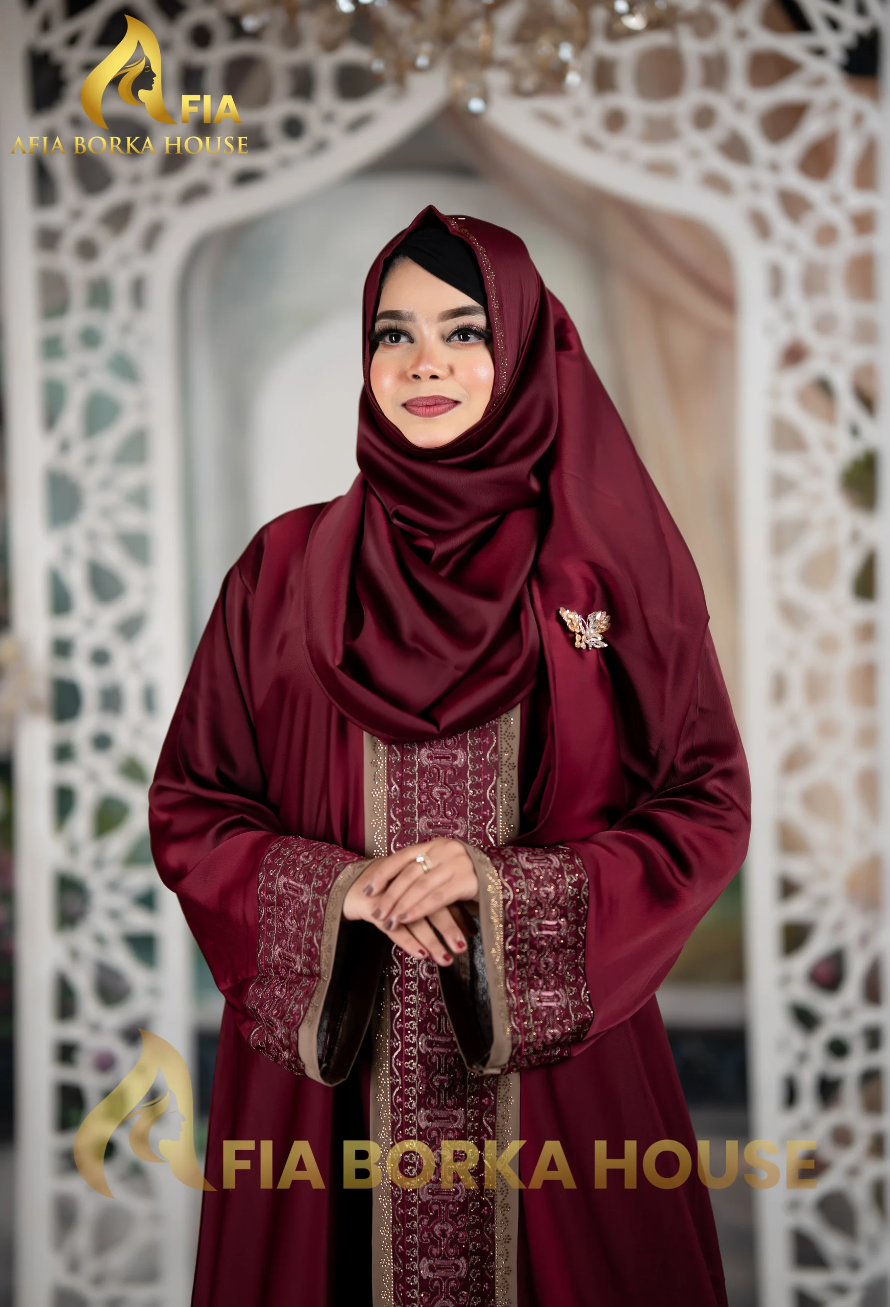 Arabian Style Jafran đđŽđ¯đŋđļđ°đ Embroidery Burqa Merun Colour