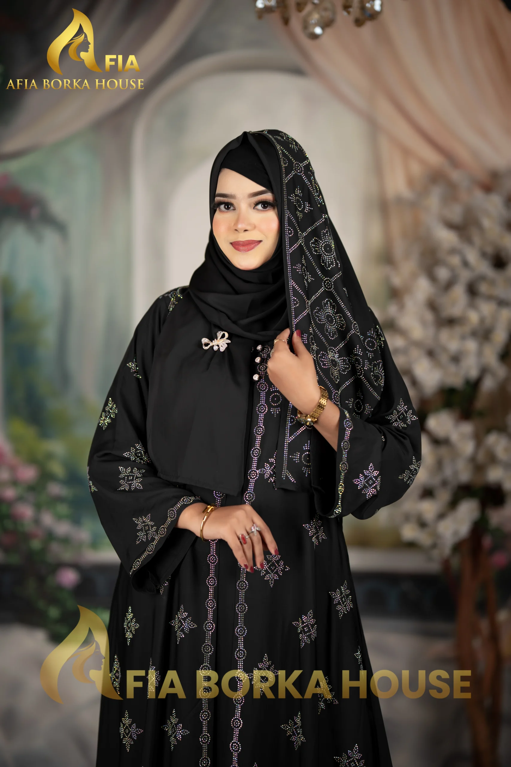 ফেব্রিক – অরজিনাল প্রিমিয়াম দুবাই চেরি দুবাই MC – DMC স্টোনের কাজ করা পাথরগুলো হিট প্রেস মেশিনে বসানো তাই ওঠার কোন সম্ভাবনা নেই।