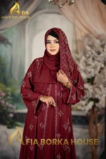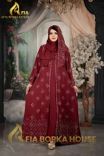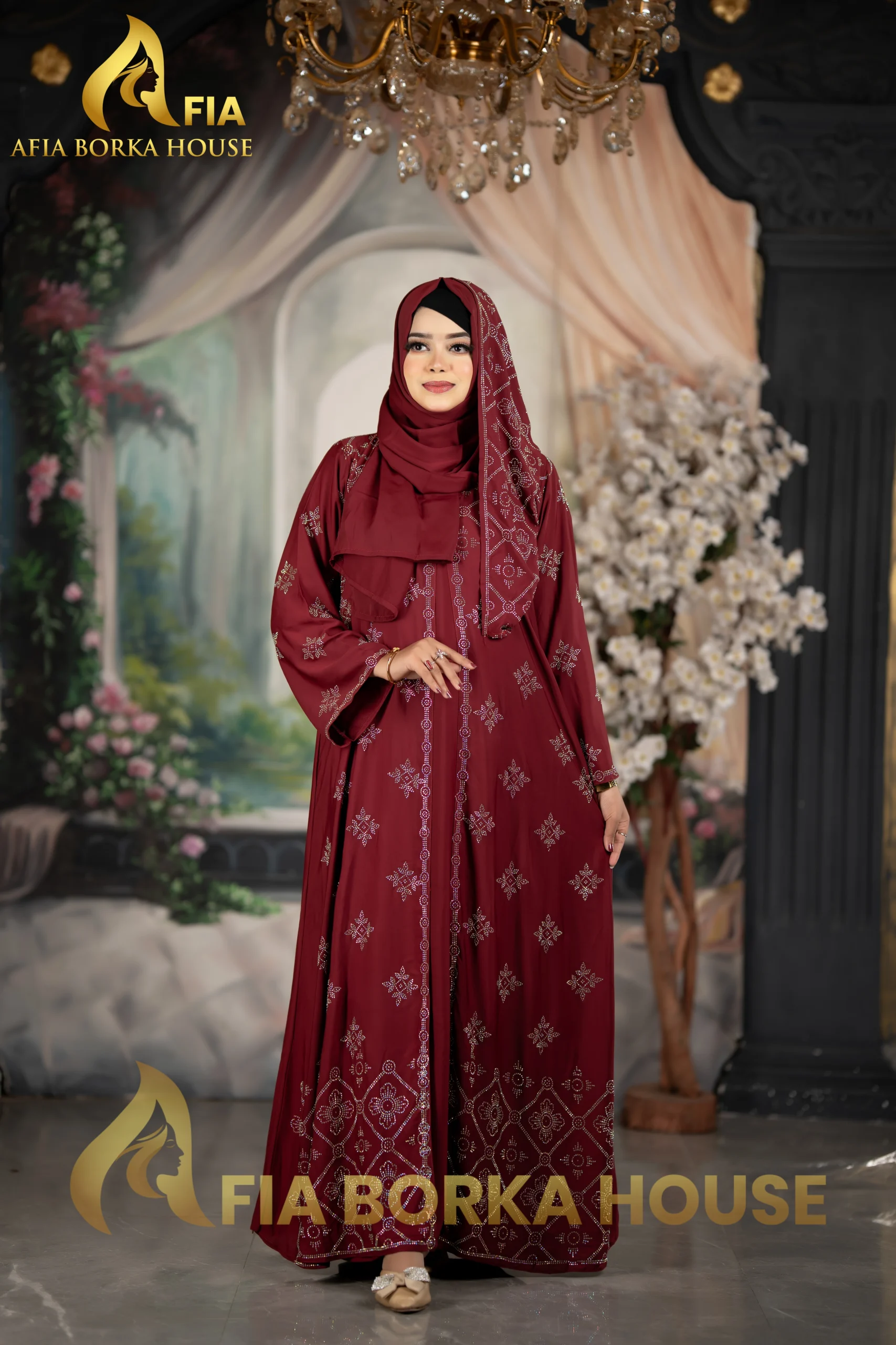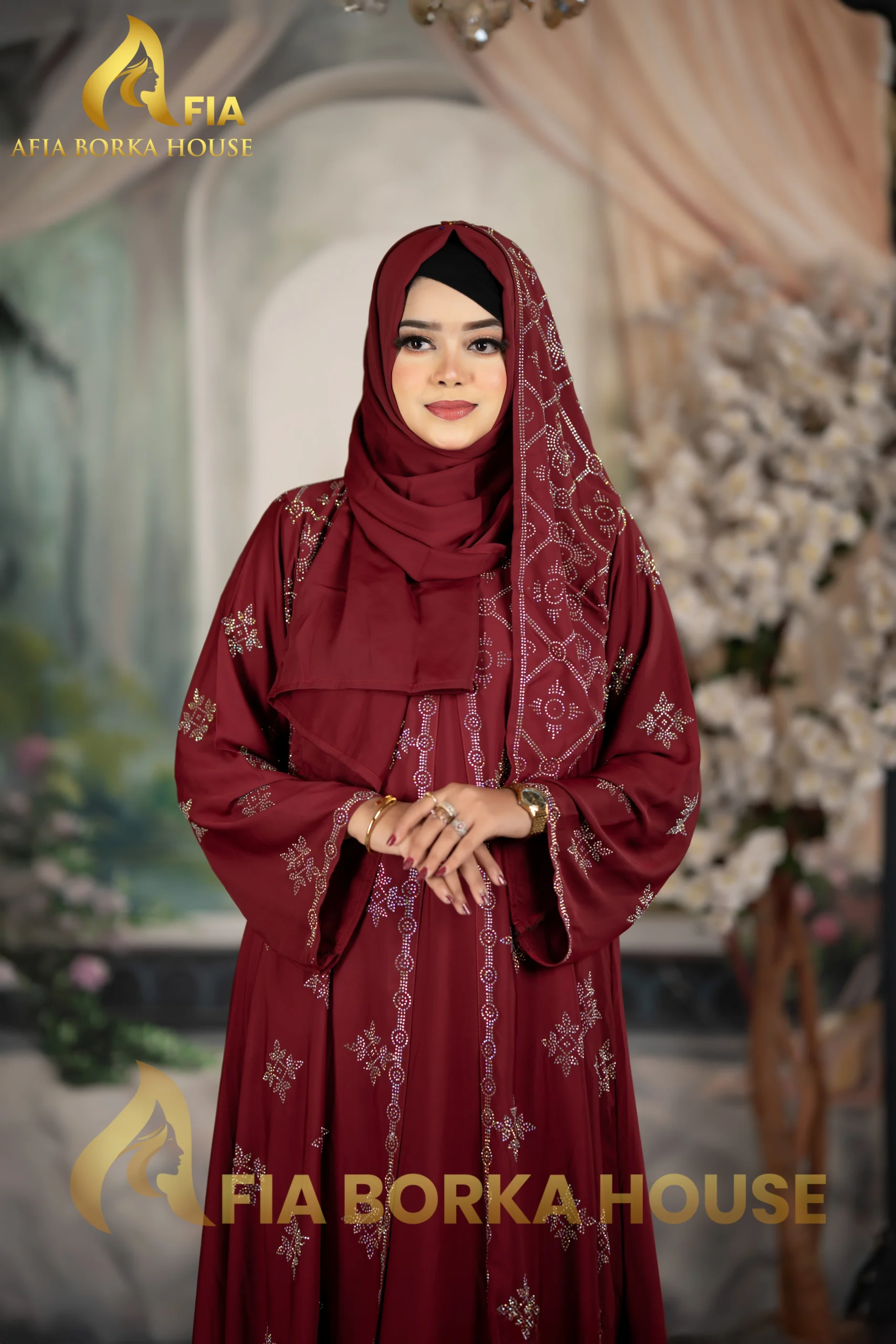 Dubai cherry Attached Koti Party Borka Maroon Colour
