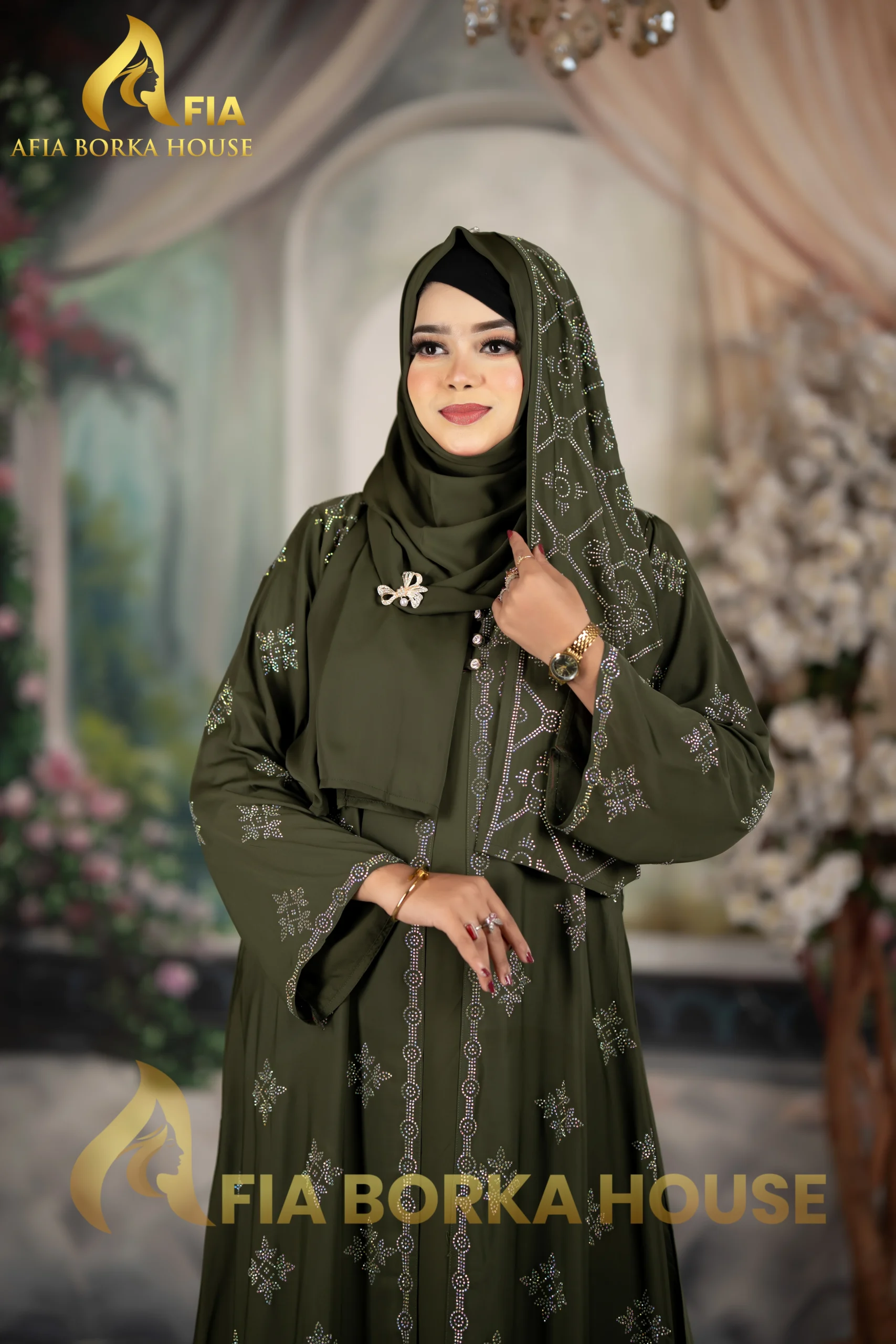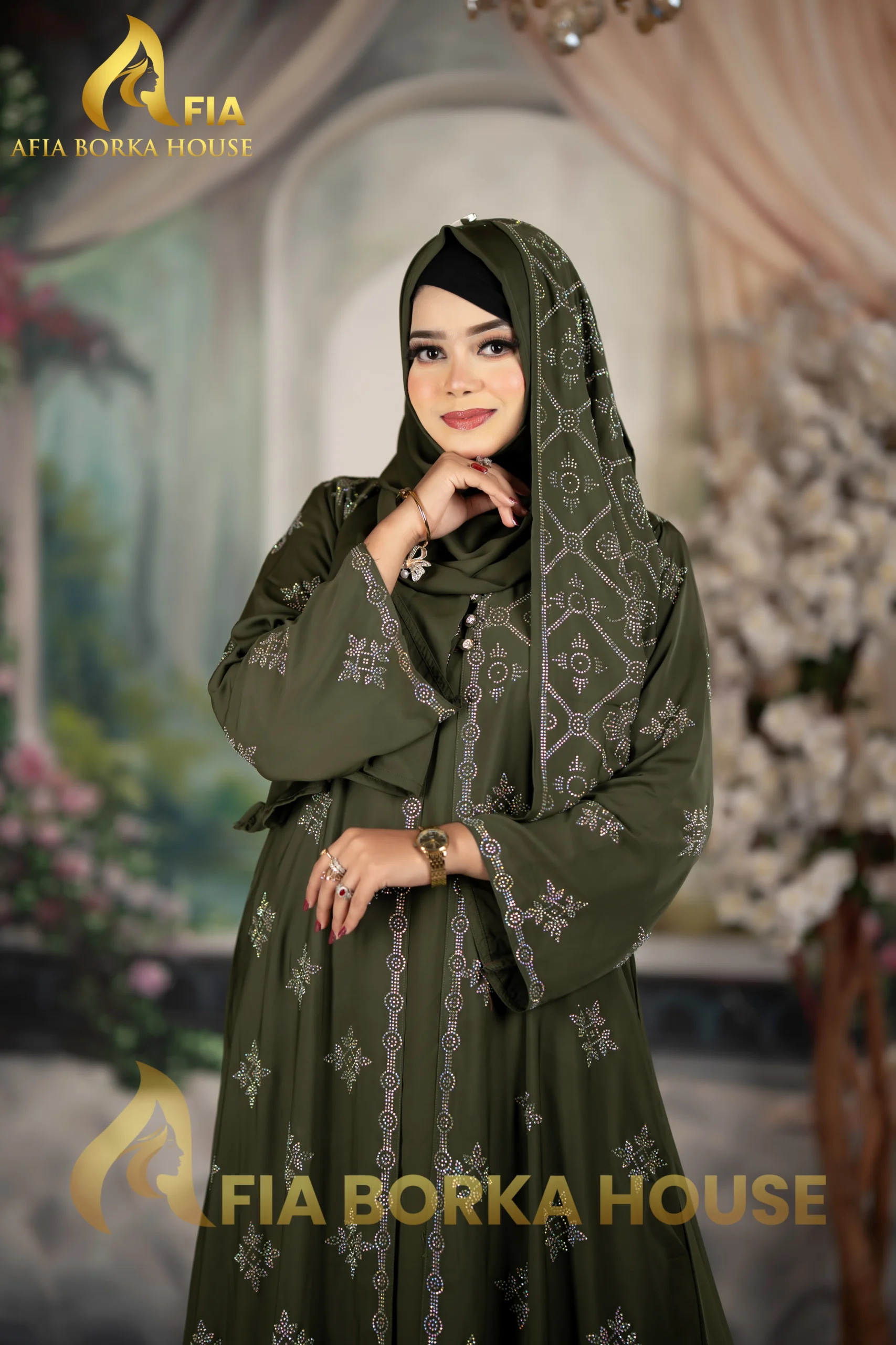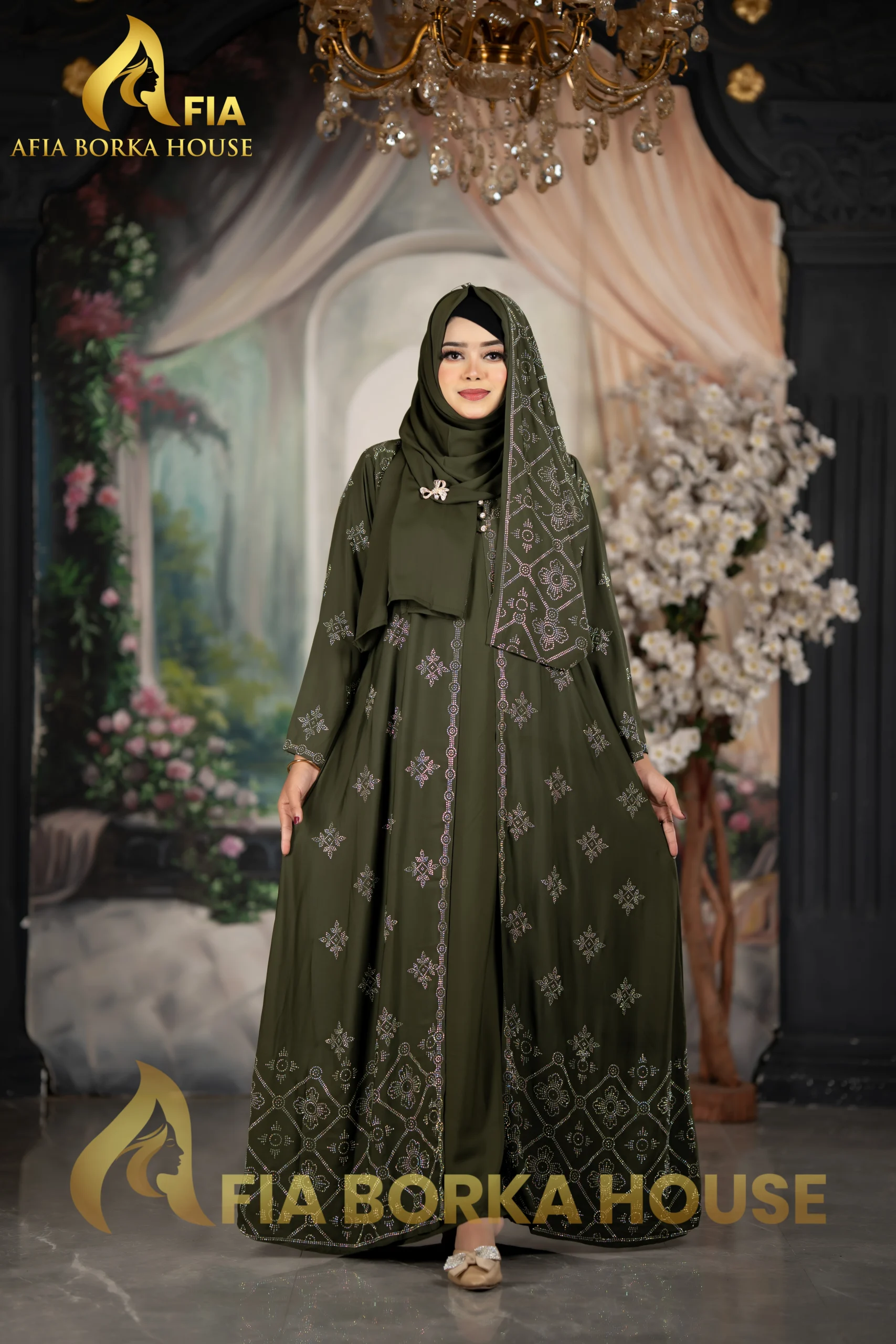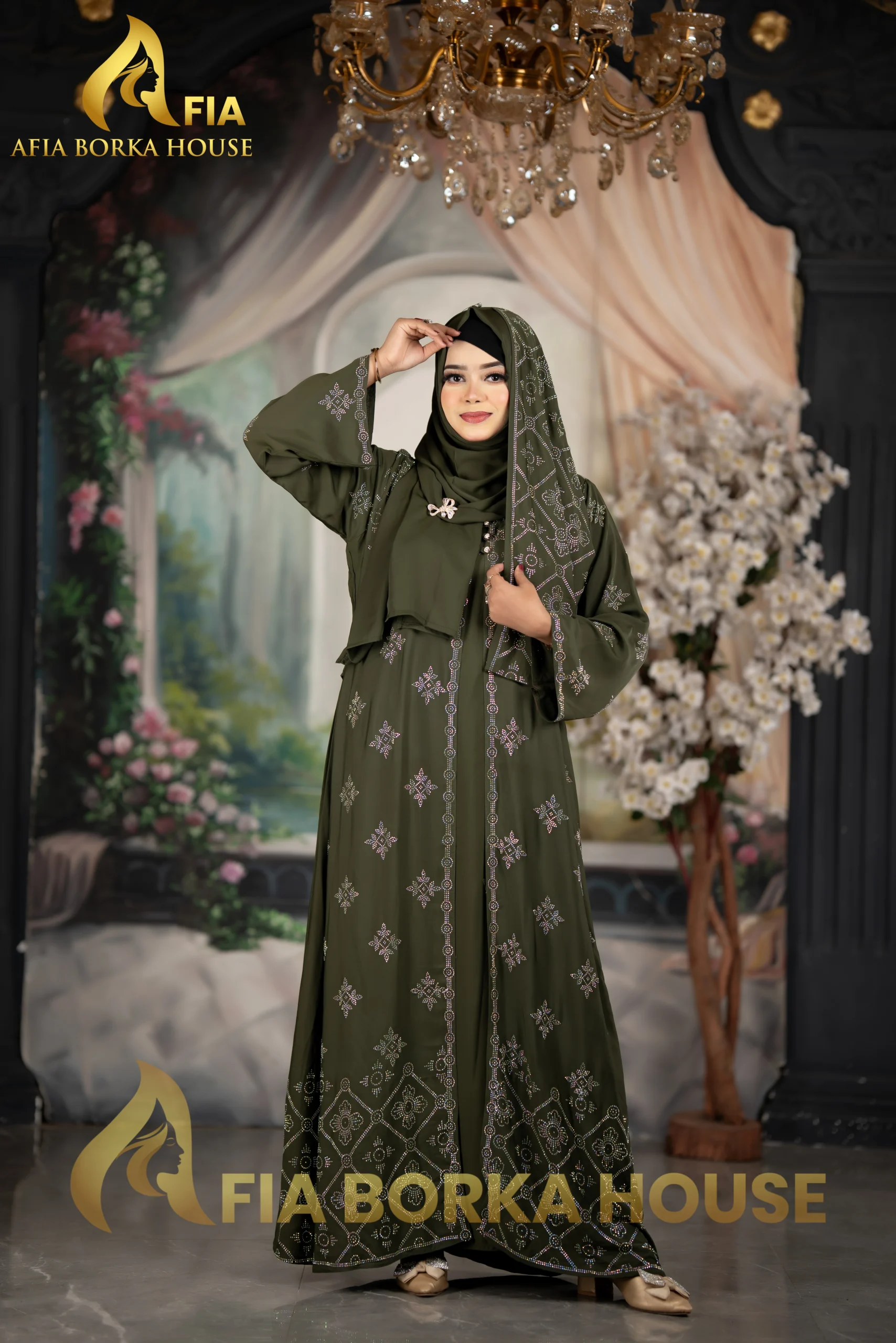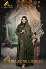 Dubai cherry Attached Koti Party Borka Olive Colour