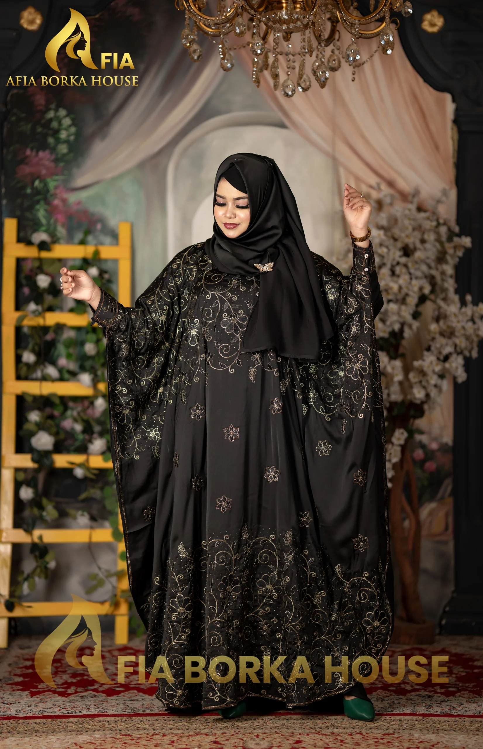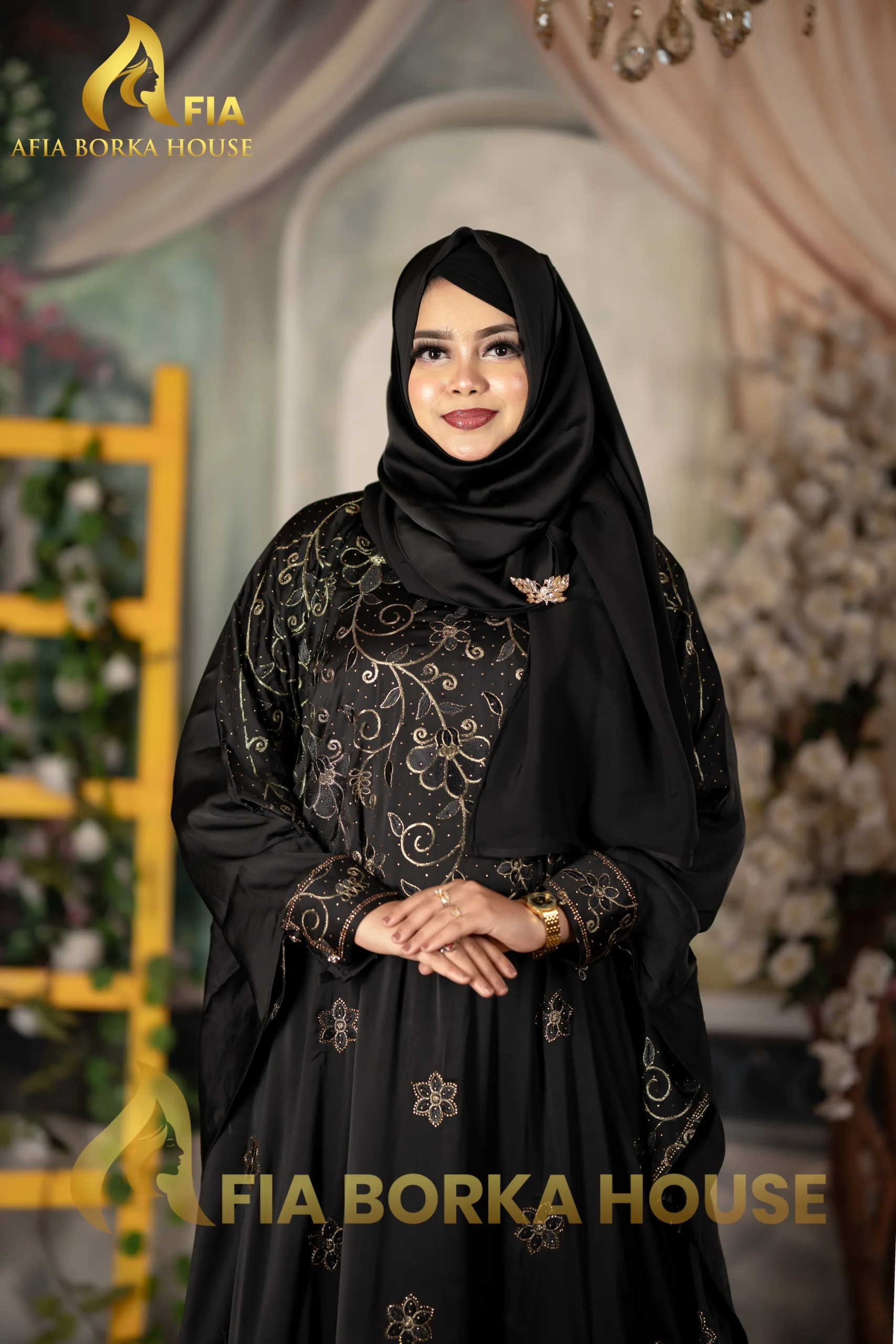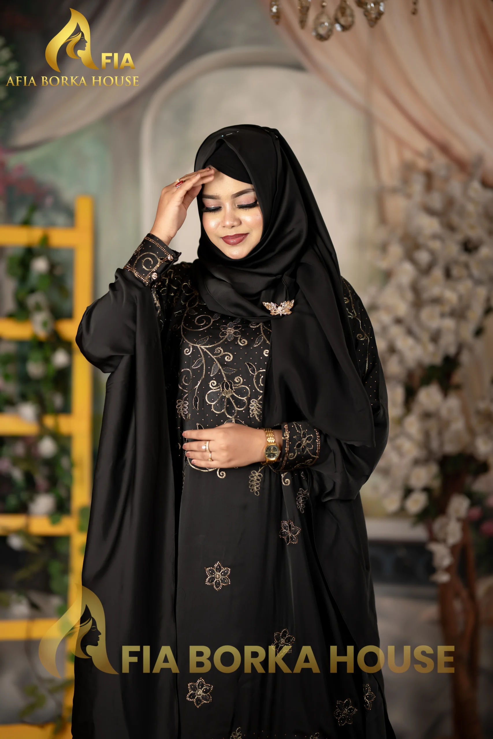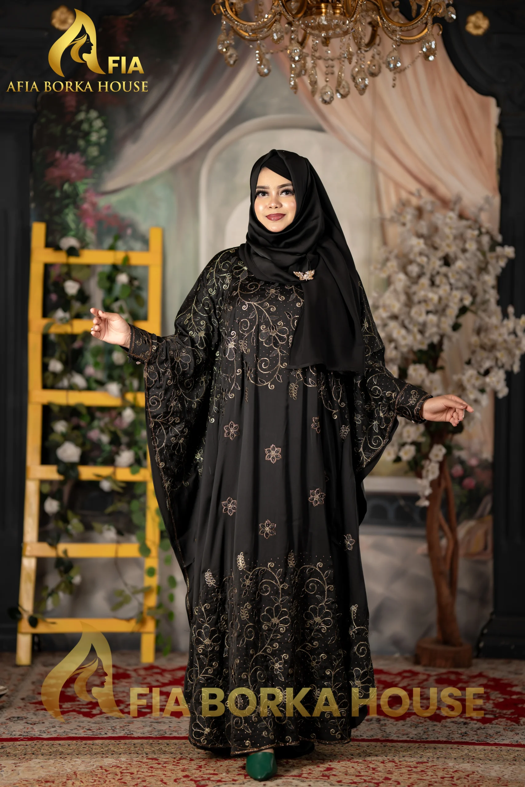 Luxury Jafran 𝗙𝗮𝗯𝗿𝗶𝗰𝘀 Embroidery Abaya Black Colour