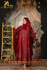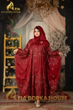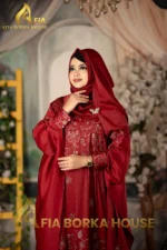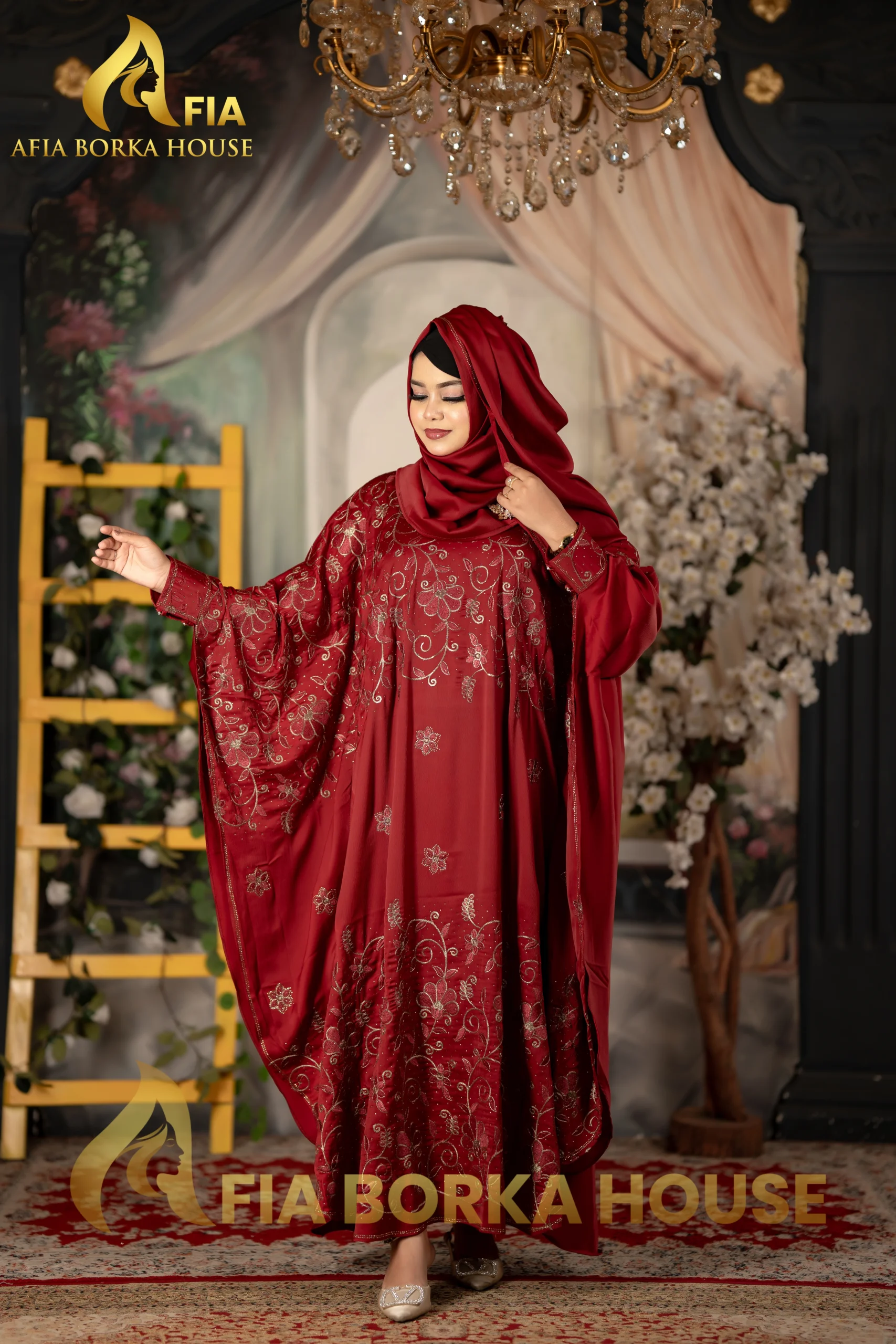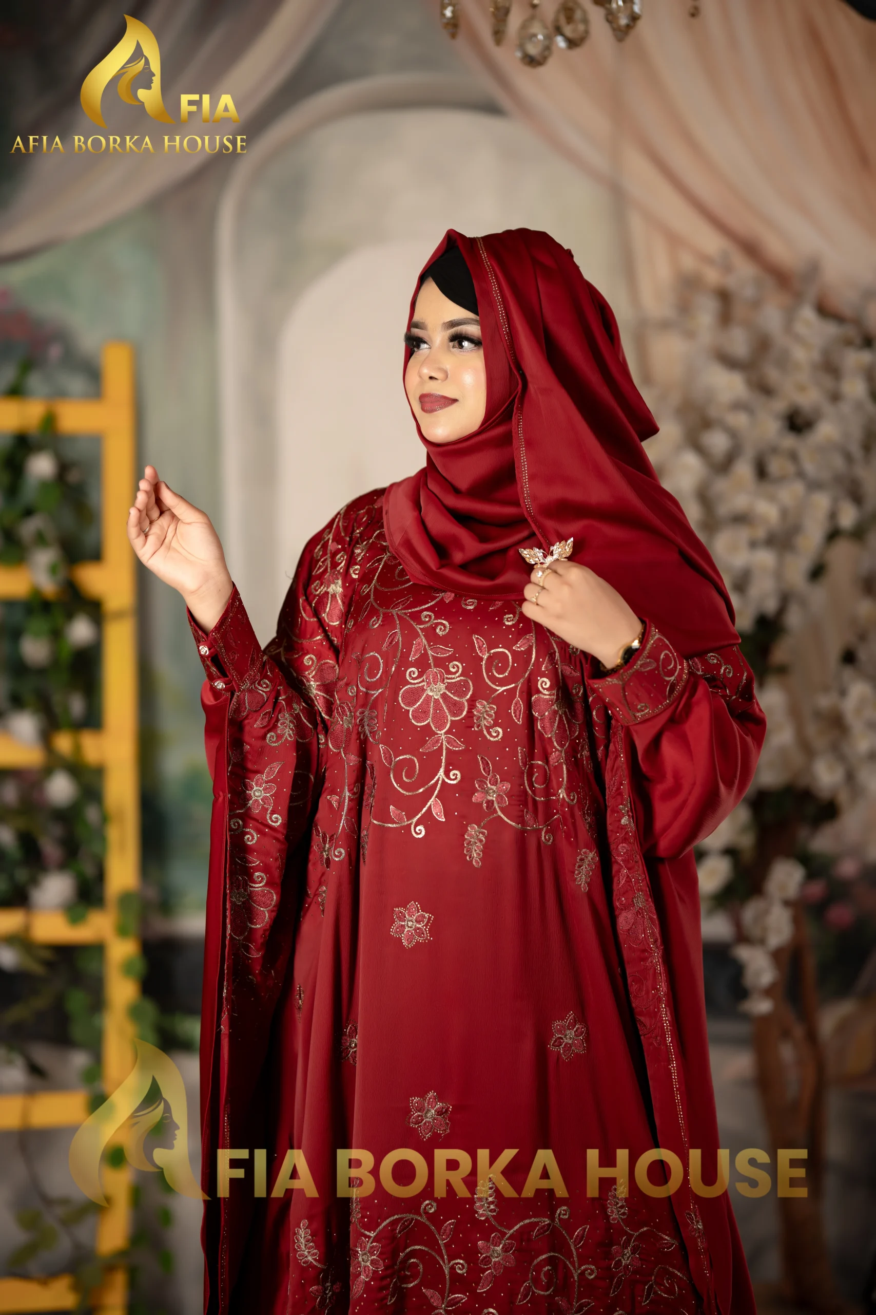 Luxury Jafran 𝗙𝗮𝗯𝗿𝗶𝗰𝘀 Embroidery Abaya Merun Colour