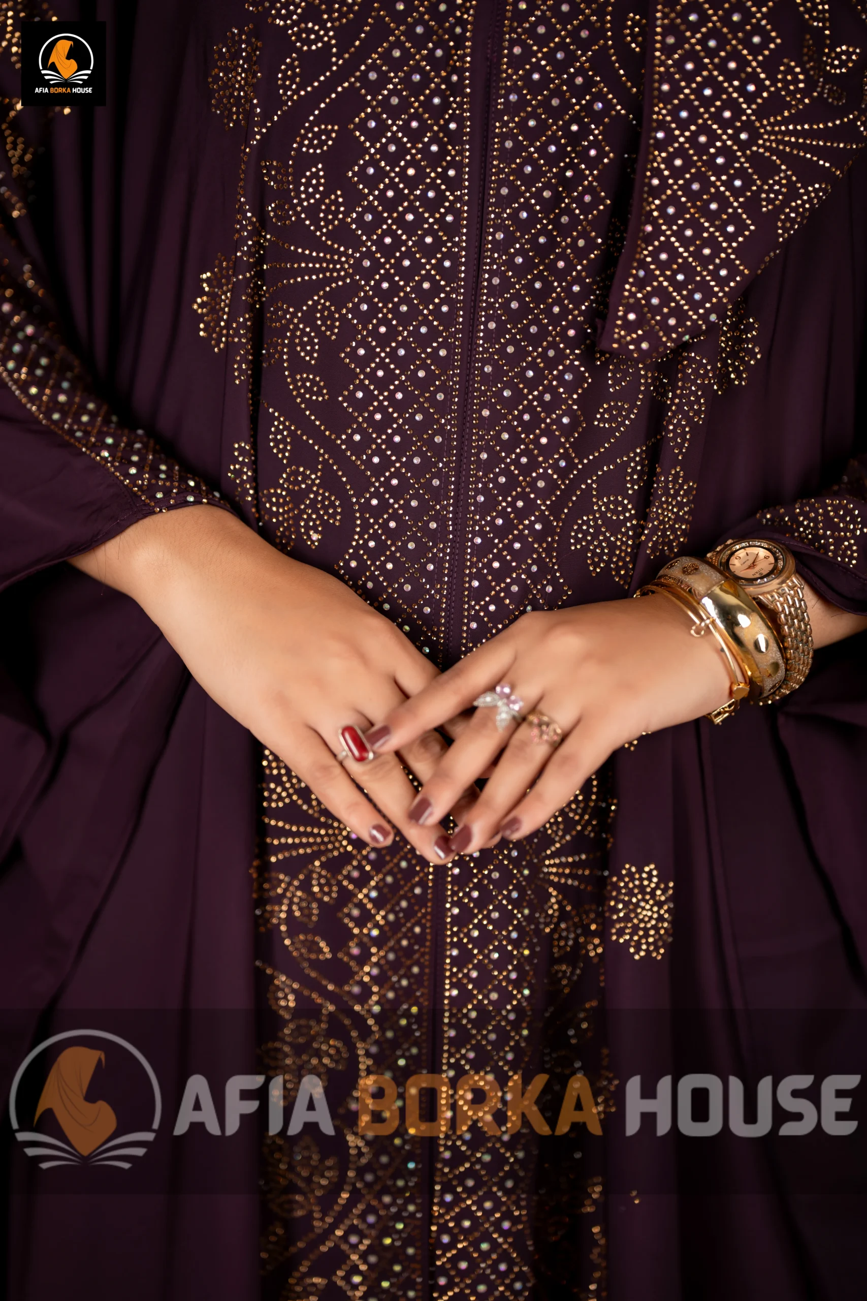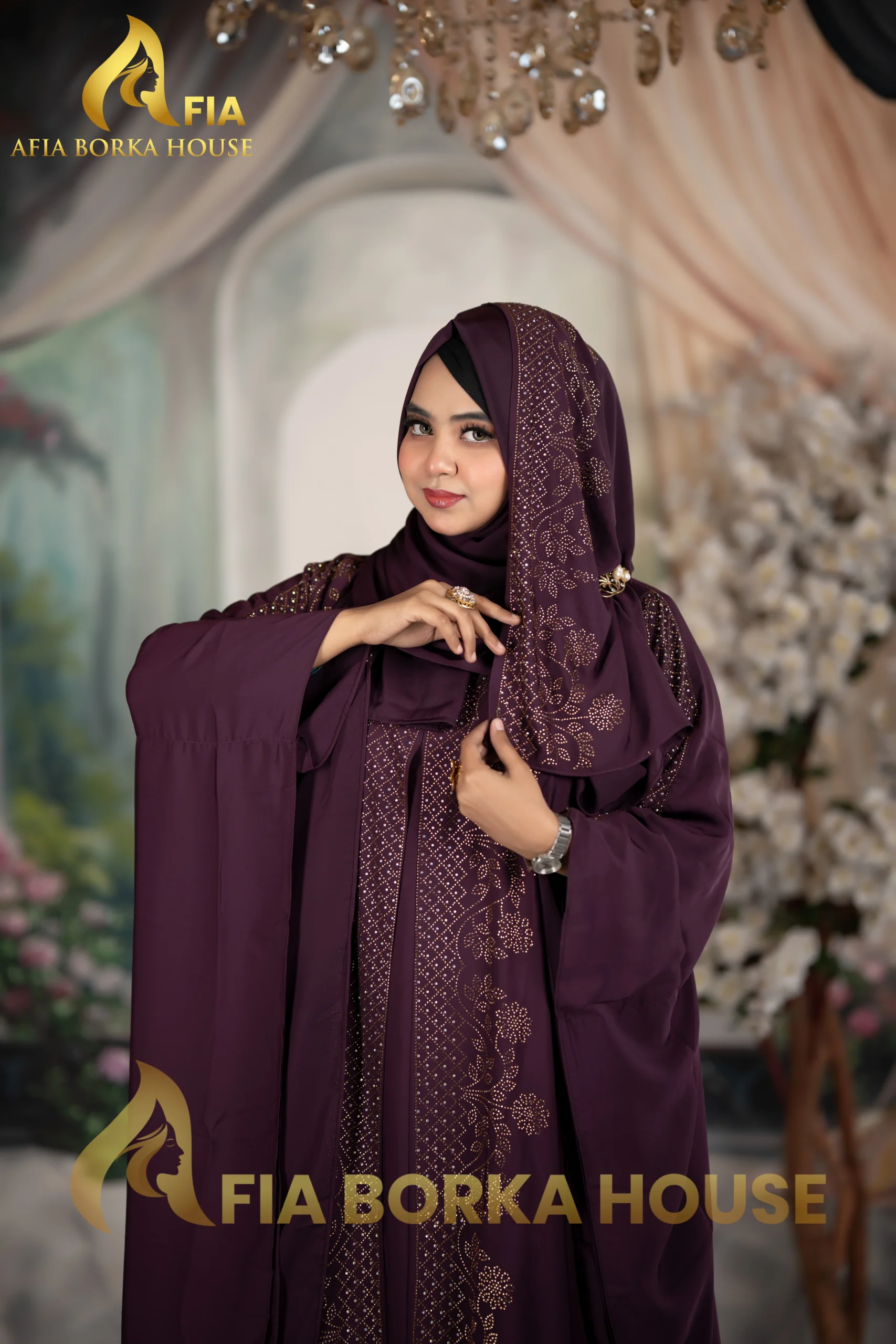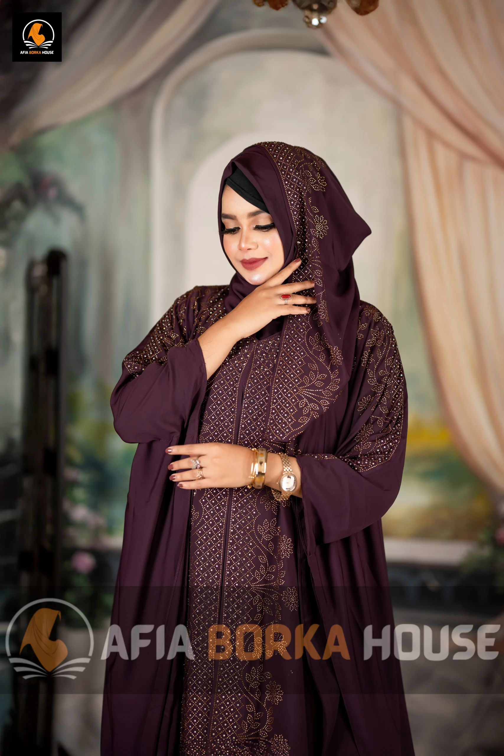 Luxury Jafran 𝗙𝗮𝗯𝗿𝗶𝗰𝘀 Embroidery Abaya Merun Colour
