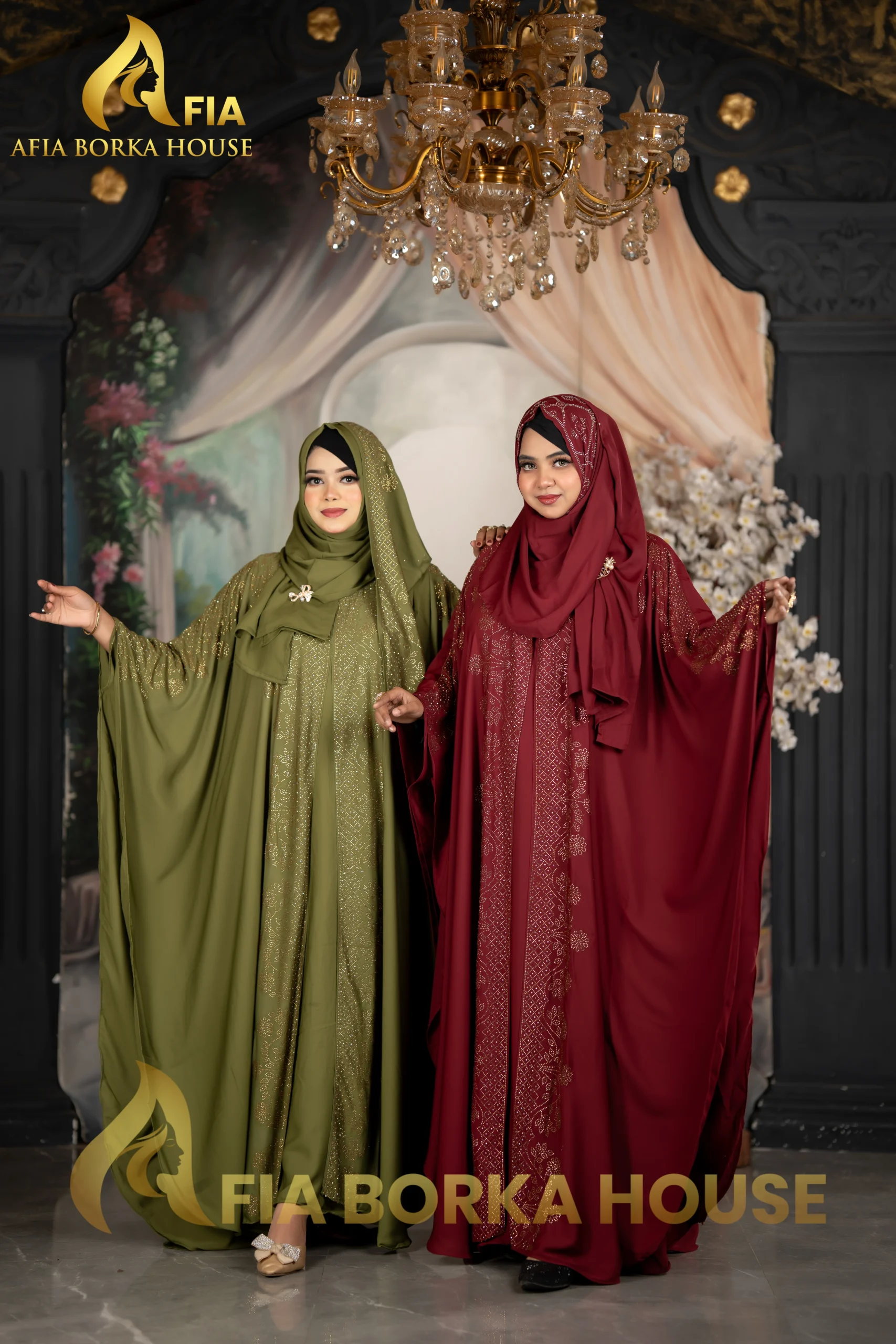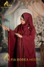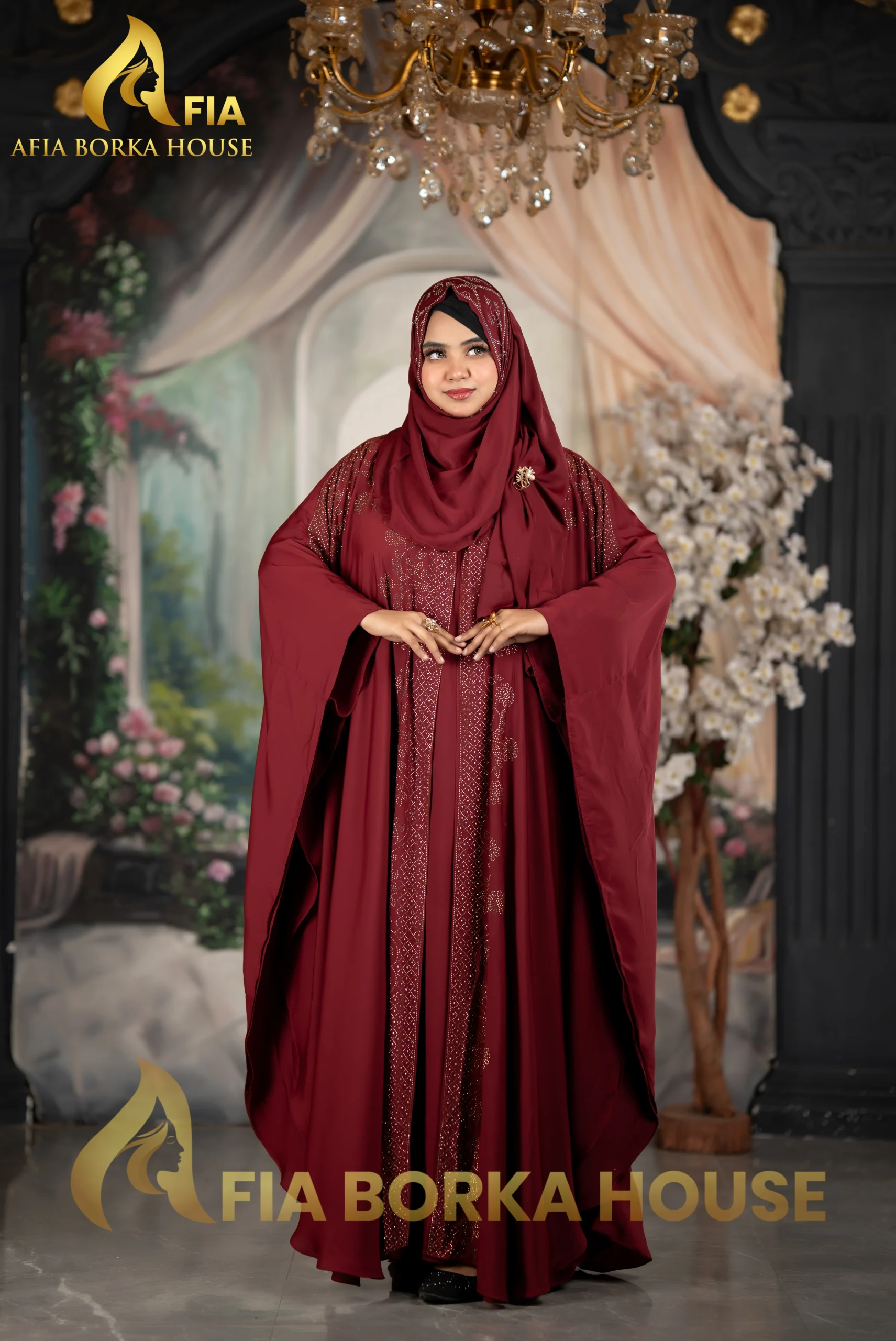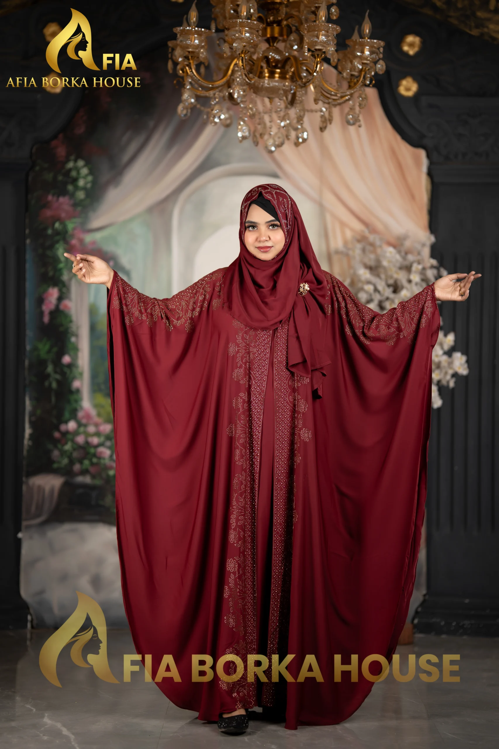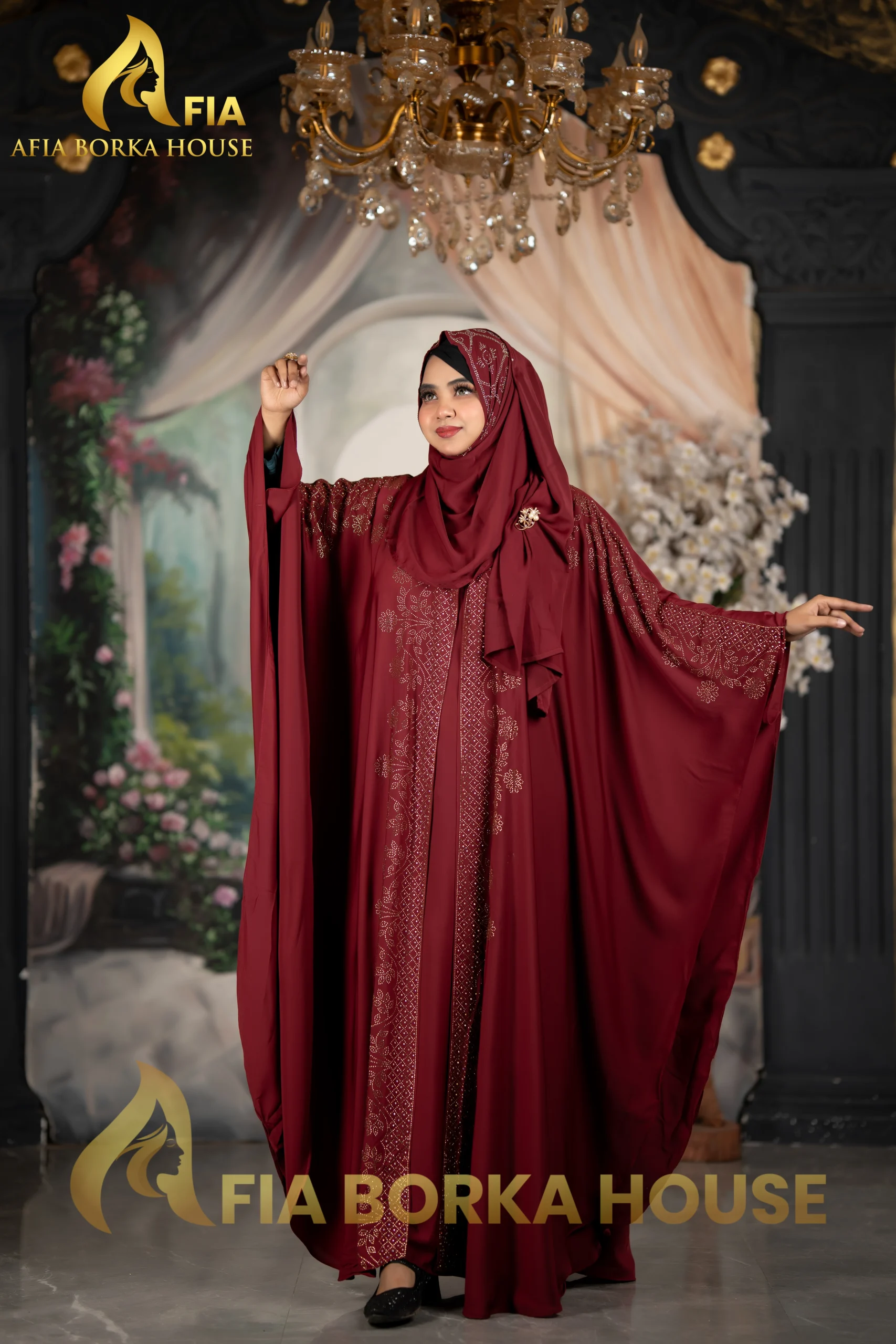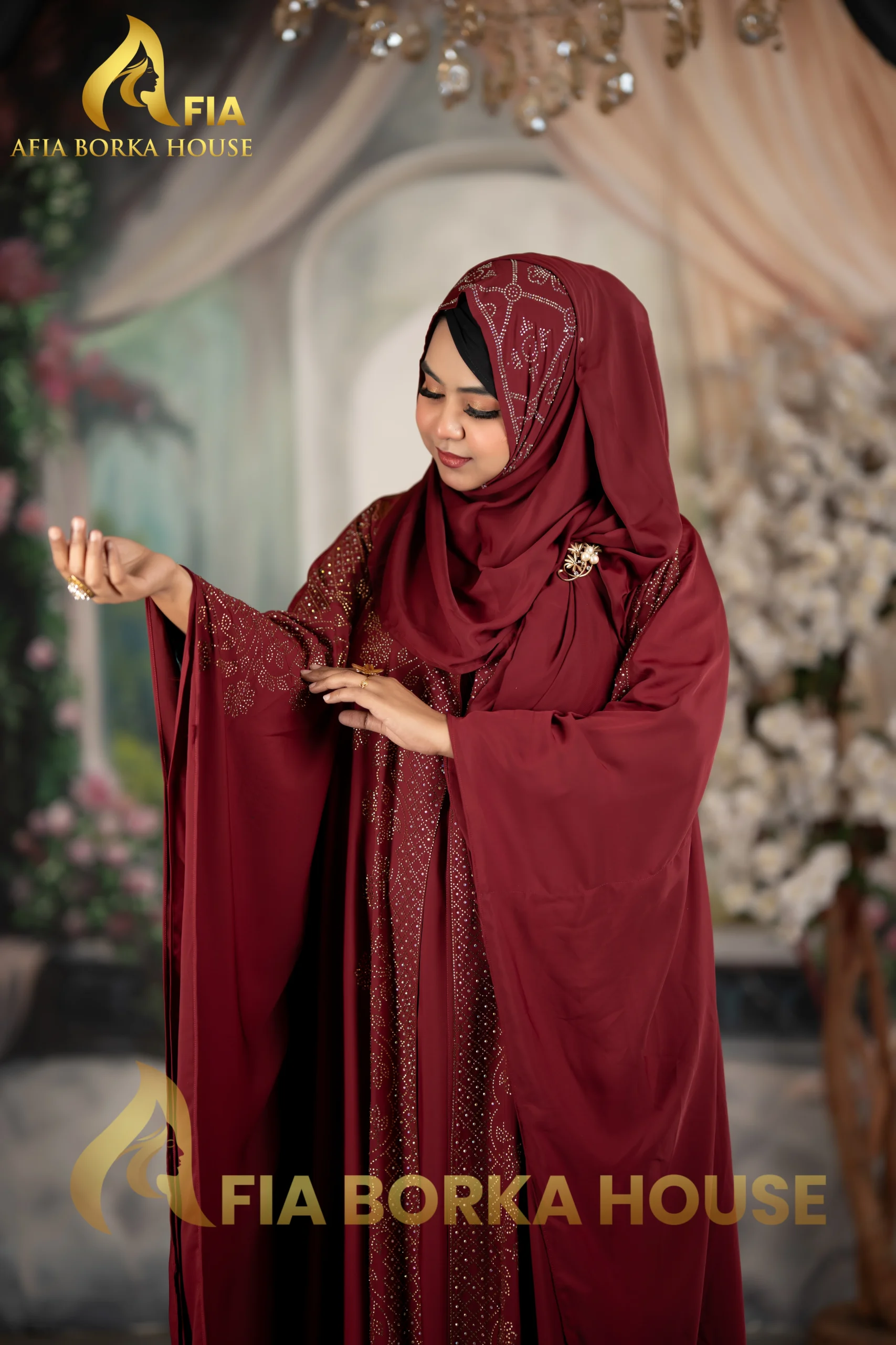 Luxury Jafran 𝗙𝗮𝗯𝗿𝗶𝗰𝘀 Embroidery Abaya Merun Colour
