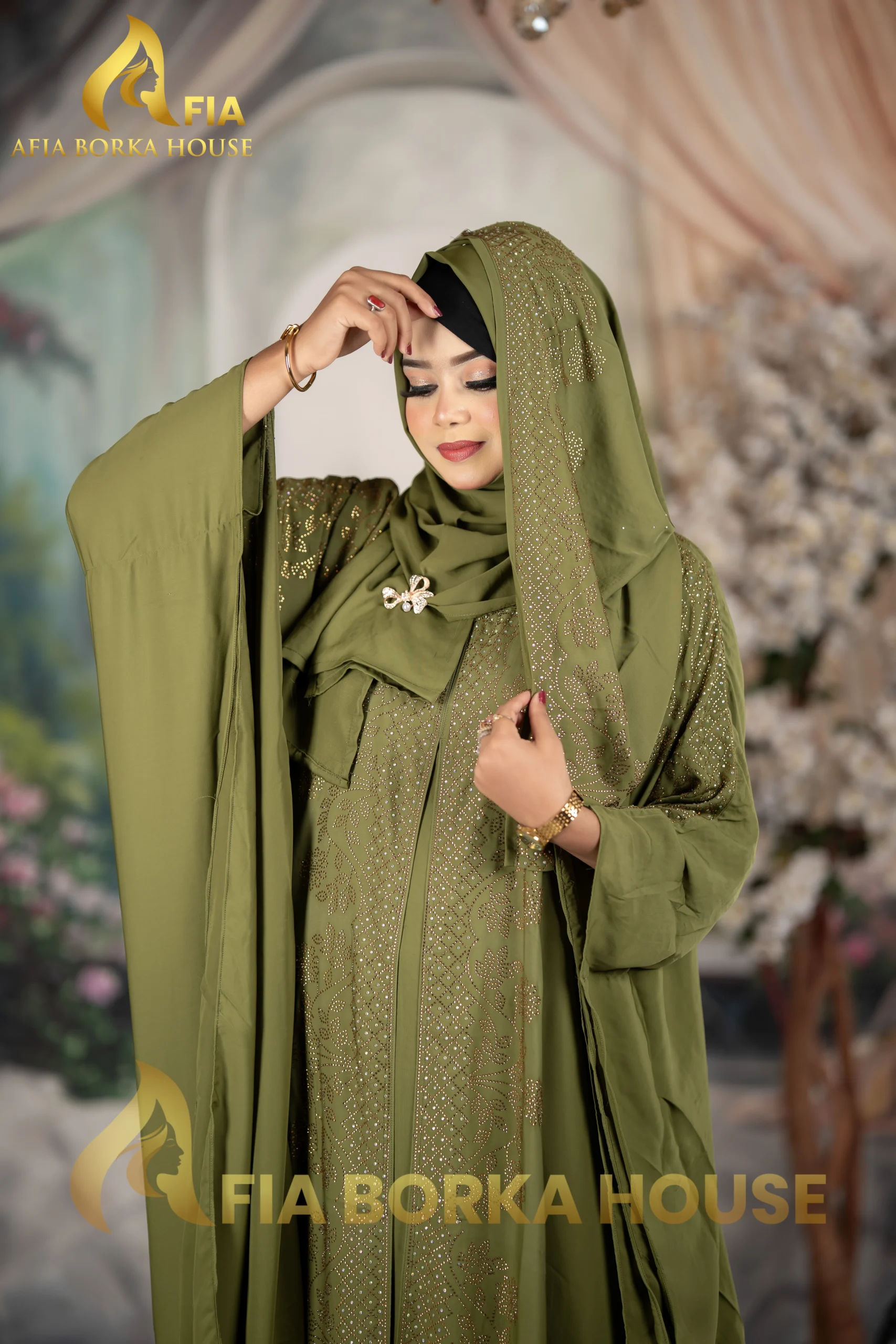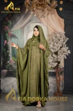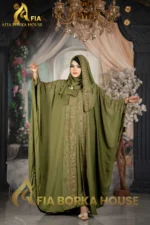 Luxury Jafran 𝗙𝗮𝗯𝗿𝗶𝗰𝘀 Embroidery Abaya Soft Olive Colour
